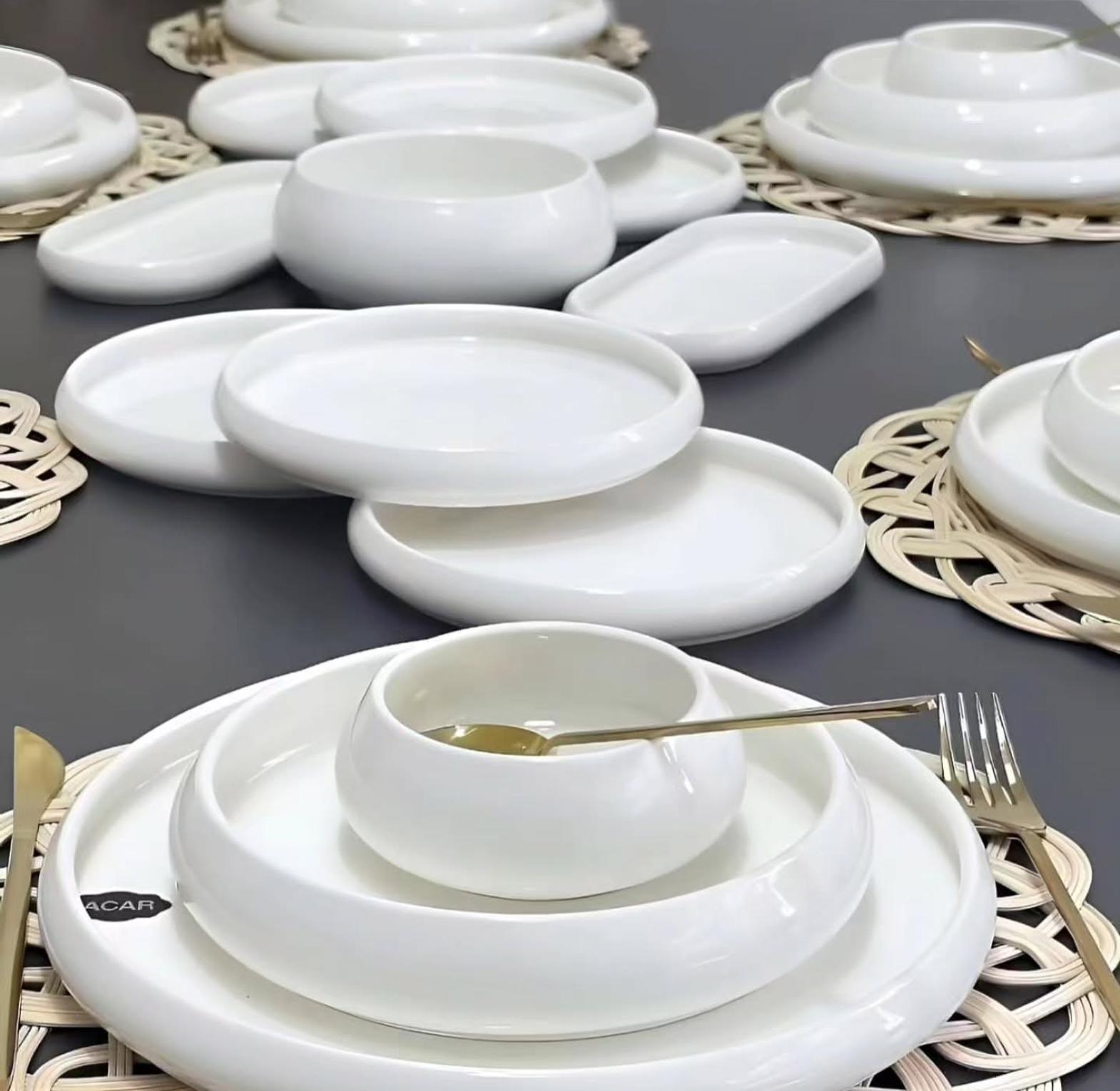 The Premium 24-Piece White Ceramic Dinner Set is the epitome of modern sophistication for your dining occasions. This unique, stylish tableware collection includes everything needed to set a complete table for six, ensuring elegance and uniformity in your presentation. The set comprises 6 generously sized Dinner Plates, 6 versatile Side Plates, 6 deep Salad or Pasta Bowls, and 6 perfectly proportioned Soup Bowls. Crafted from high-quality ceramic, each piece features a smooth, refined finish and a clean white aesthetic that allows your culinary creations to take center stage. This durable dinnerware is designed for daily use while maintaining a premium look, making it an essential upgrade for homeowners looking to make a statement with simple elegance and timeless appeal.