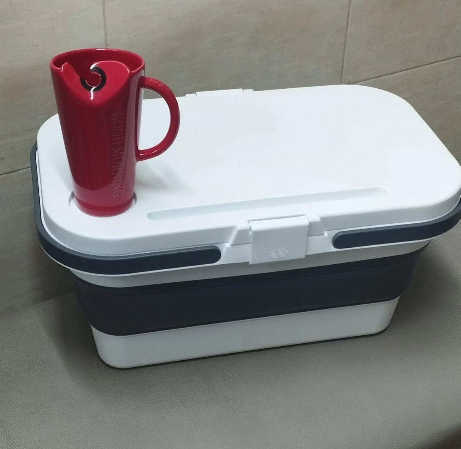 3-in-1 Versatility: This unit is multipurpose, functioning as a spacious storage box or travel bucket, and can convert into a table or cutting board using its cover.