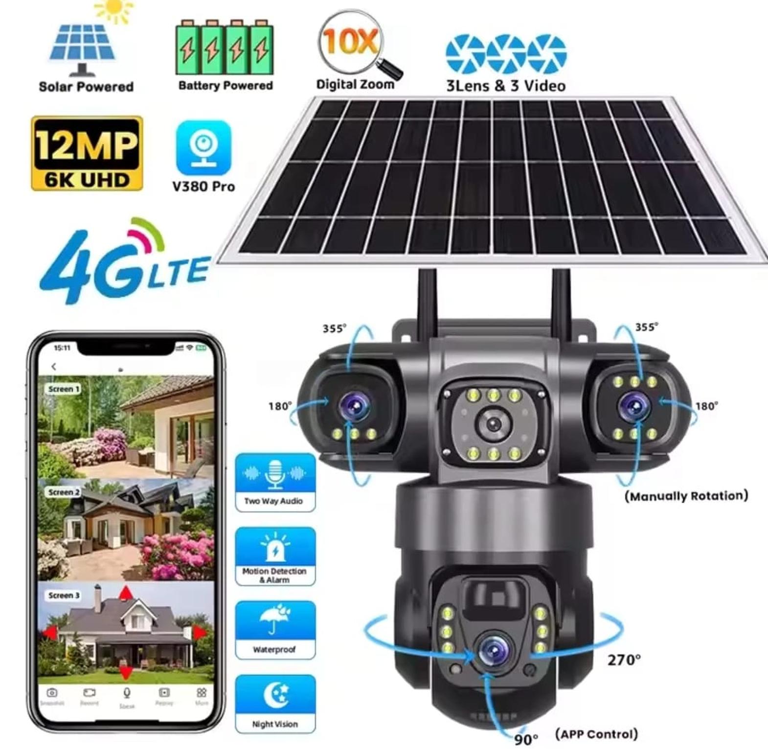 The 3-Lens Solar CCTV Camera gives you full 360° protection with real-time monitoring—anytime, anywhere. Powered by a high-efficiency solar panel, it delivers crystal-clear day & night vision, smart motion alerts, two-way audio, and waterproof outdoor performance. It’s the perfect wireless security solution for homes, businesses, gates, compounds, shops, and farms.
