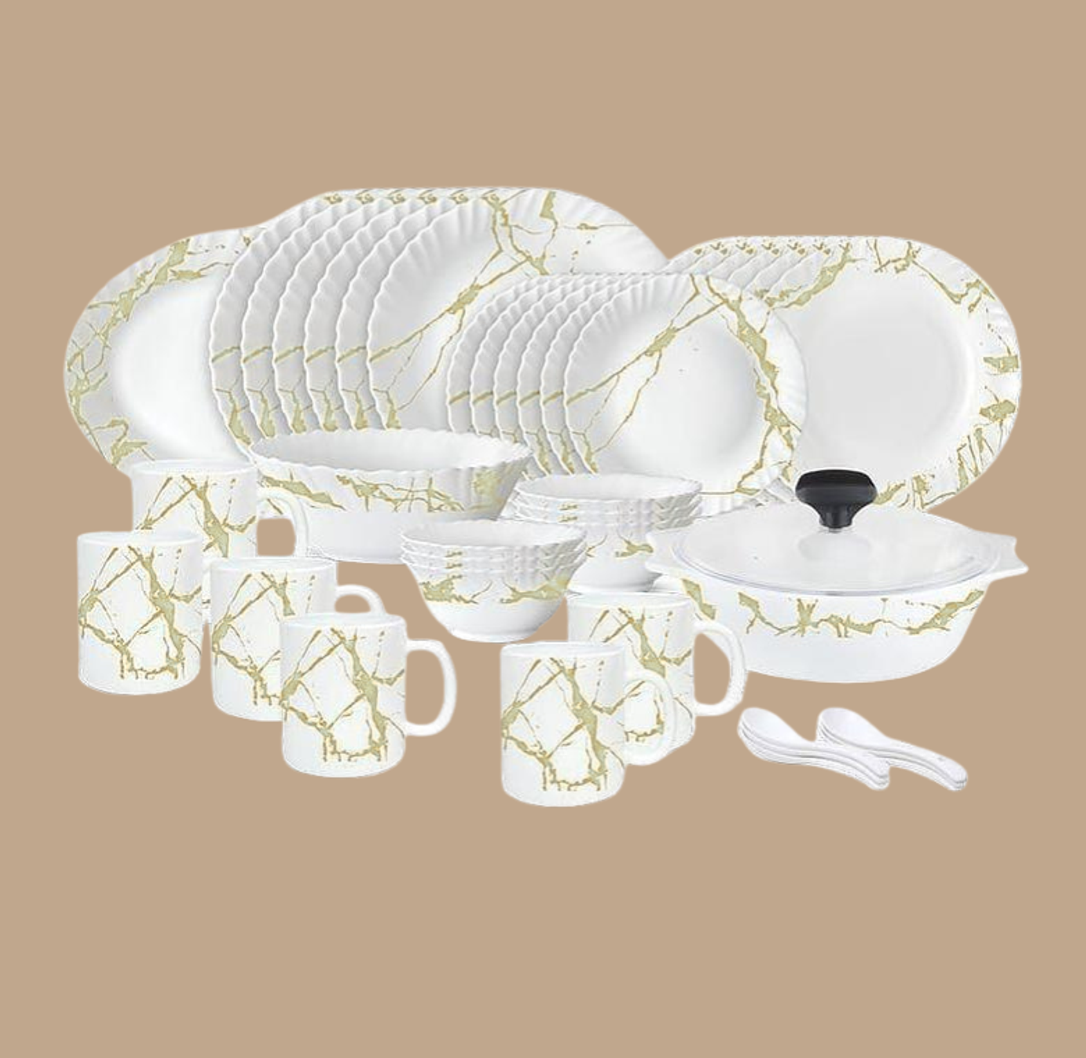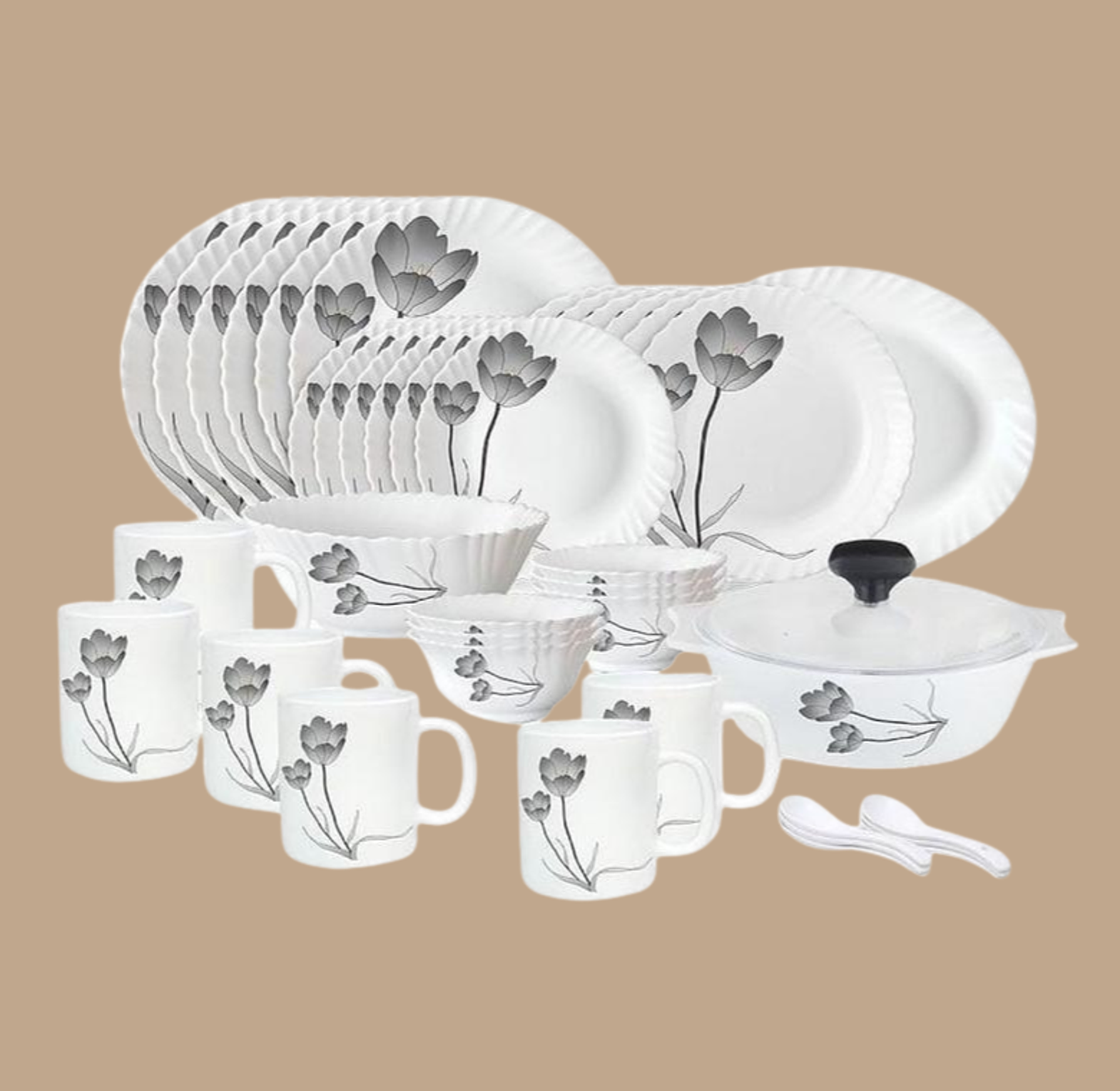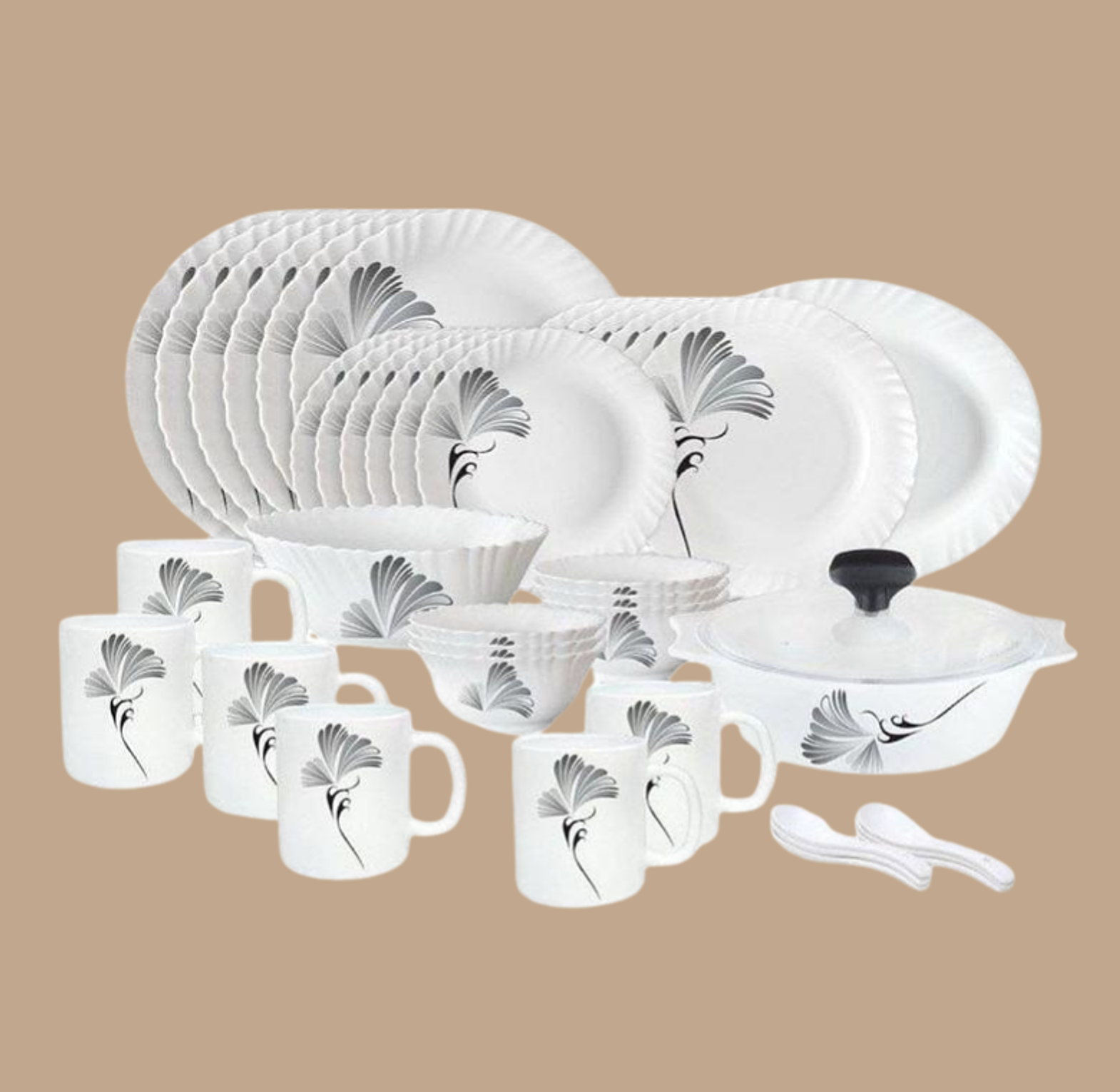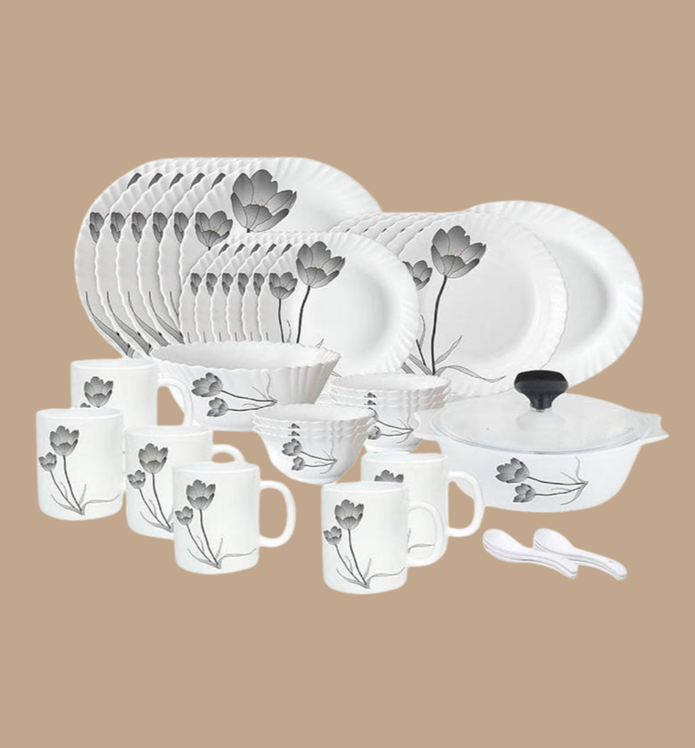 Elevate your everyday dining with this comprehensive 40-piece dinnerware collection from Signature, offering functionality without sacrificing beauty. Made from high-quality opal glass, every piece is designed to be lightweight, incredibly durable, and highly resistant to both heat and chipping, making it an excellent long-term investment for the household. This coordinated set provides ample service for a large family or guests, including various sizes of plates, deep soup plates, serving and small individual bowls, and coffee mugs. The collection is further enhanced by a lidded casserole dish for serving hot meals and necessary serving spoons. The pristine white, plain design offers timeless elegance, easily blending with any existing kitchen or dining aesthetic while providing the convenience of easy cleanup.