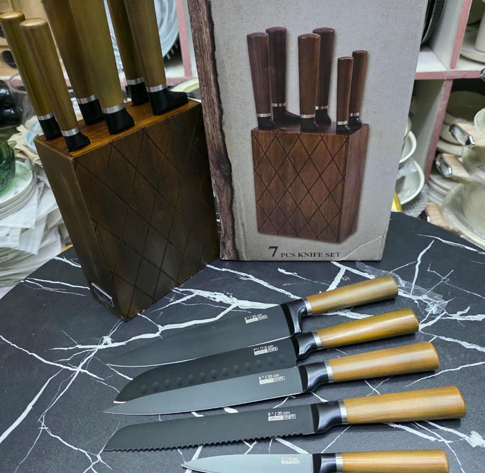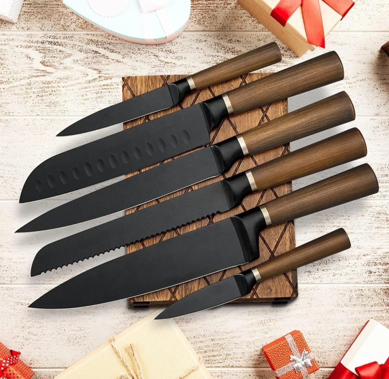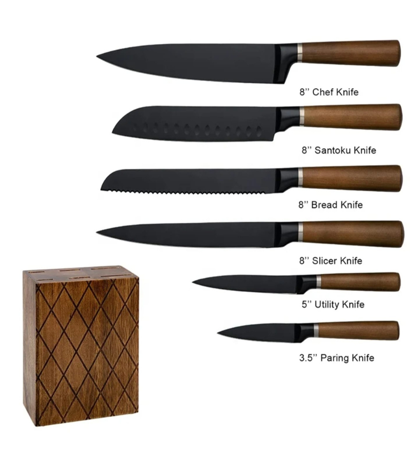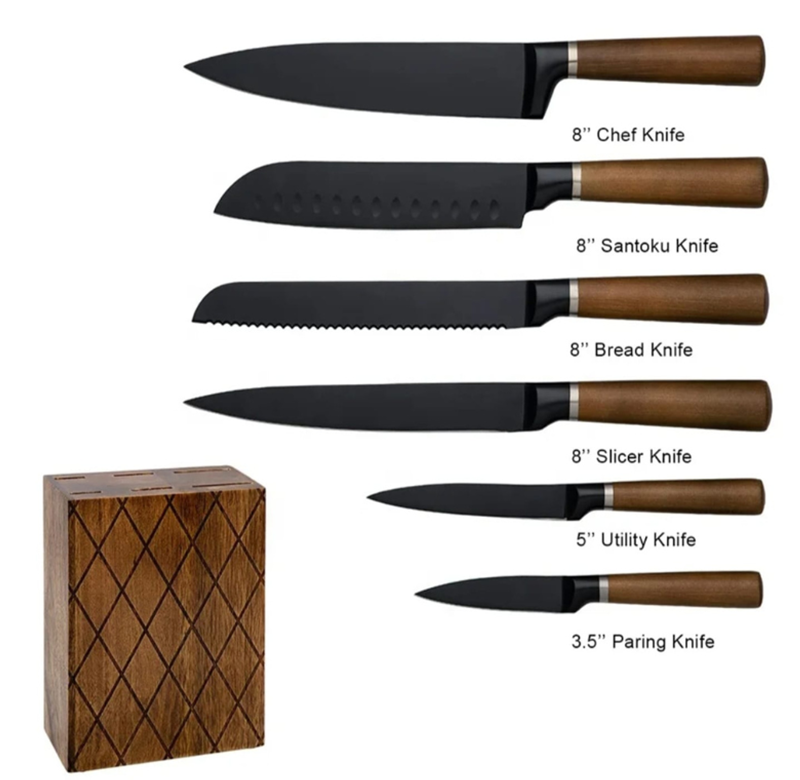Ergonomic Design: The knives feature elegant, hollow wood handles that provide a comfortable, non-slip grip and a sophisticated, contemporary aesthetic.