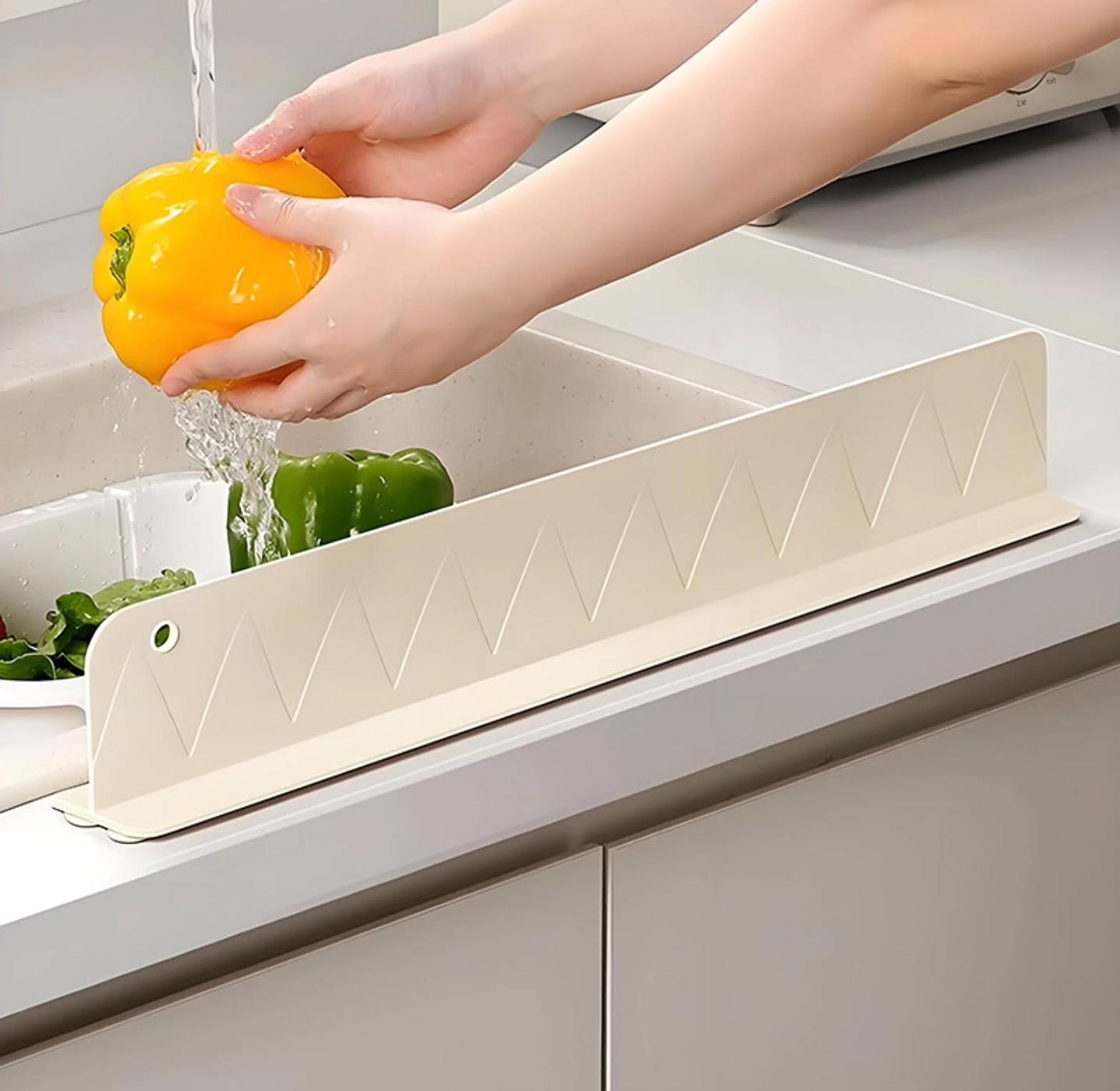 Eliminate the mess and frequent wiping associated with washing dishes and food by utilizing this smart kitchen splash guard. It creates an effective barrier between the sink and the counter, helping to protect your surrounding kitchen area from water damage and dampness.