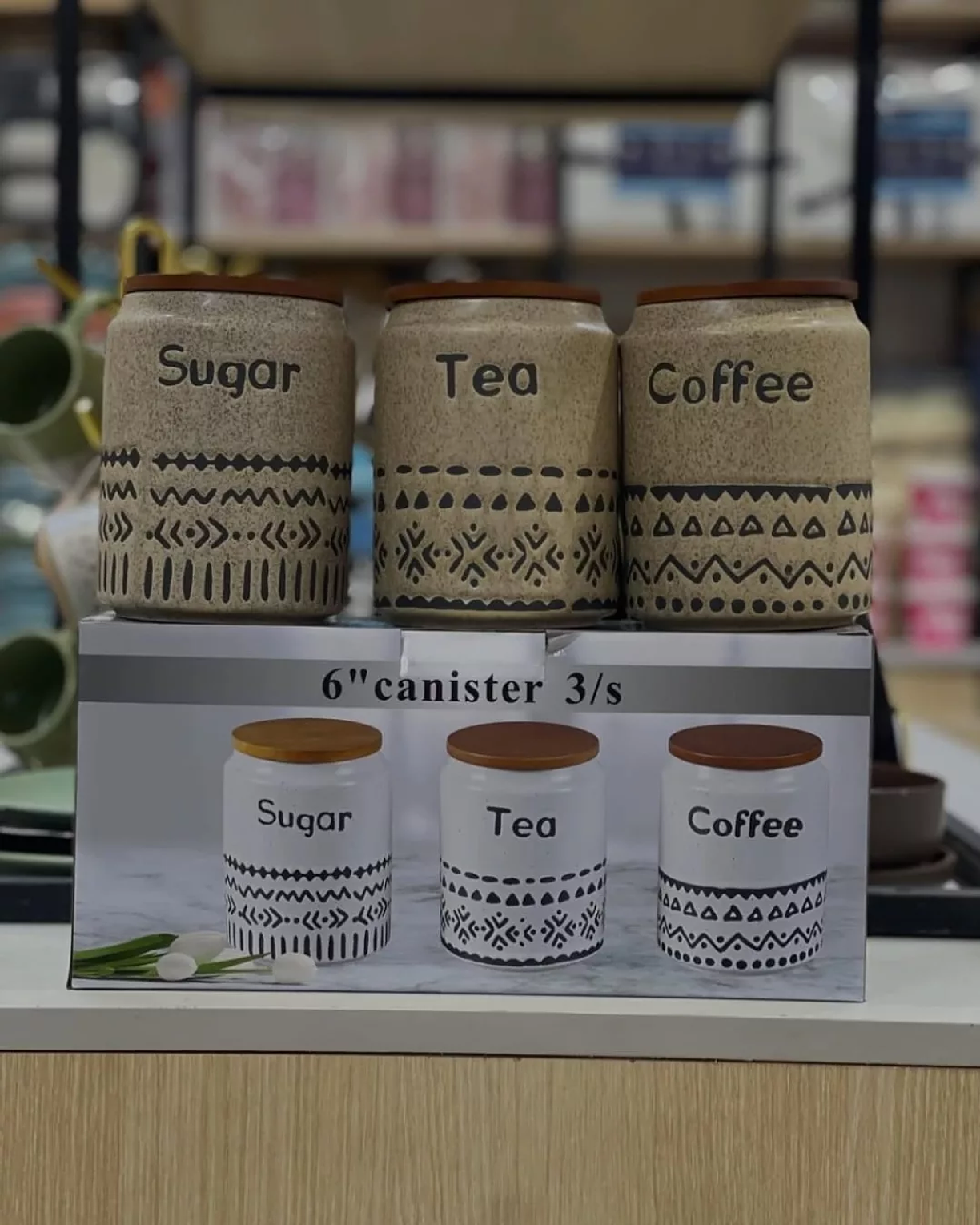 Elevate your kitchen counter organization with this charming 3-piece set of ceramic canisters, designed for both aesthetic appeal and reliable food preservation. Each piece is crafted from durable, high-quality ceramic in warm brown tones, finished with unique, hand-applied-look artisan patterns that add a captivating visual texture to your space. A vital feature of these containers is the airtight seal provided by the wooden lids, which effectively locks in freshness and protects the contents from moisture and air, making them perfect for storing kitchen staples like sugar, tea, and coffee. These canisters are not just storage solutions; they are stylish, functional accents that bring a touch of unique, earthy elegance to any modern or rustic kitchen environment.