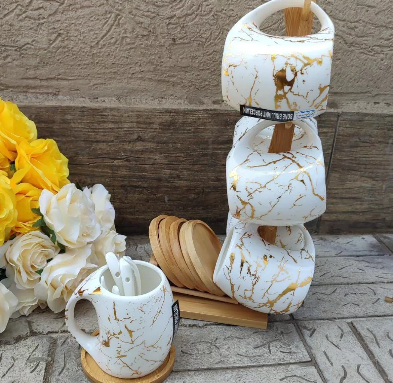 All-Inclusive Design: Designed for convenience and style, this set ensures you have everything needed for a luxurious beverage service, from cup to coaster to storage.