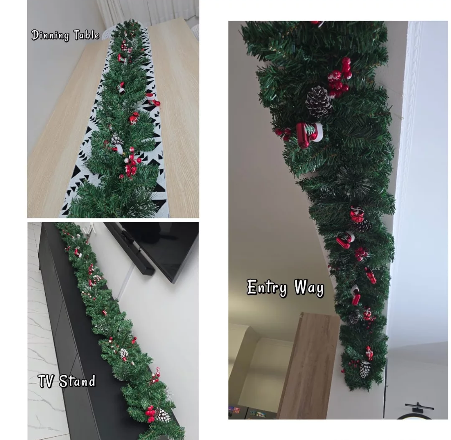 The DecoraPine 2.7M Pre-Decorated Christmas Garland is a ready-to-display festive essential that adds warmth and elegance to any space. Beautifully crafted with lush, lifelike greenery and pre-attached ornaments, it offers effortless decorating for your staircase rails, house pillars, TV stands, dining tables, or fireplaces. Measuring 2.7 meters, this garland brings a rich, full appearance that instantly enhances your holiday ambiance. Its high-quality materials ensure durability and reusability, while the pre-decorated design saves time without compromising on style. Perfect for creating a cozy, welcoming atmosphere, this garland makes decorating easy, elegant, and beautifully festive.