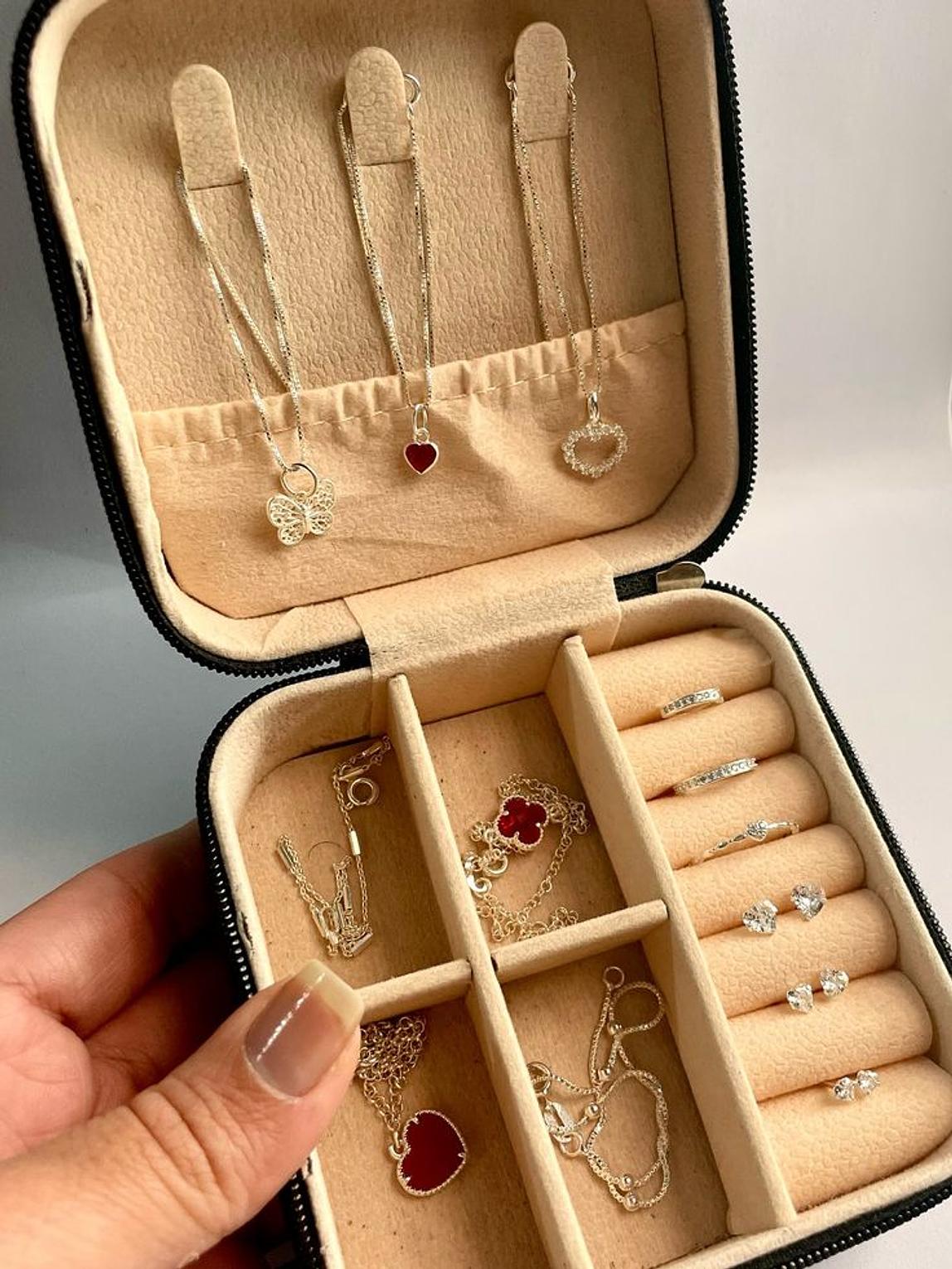 Keep your valuable collection organized and protected while traveling with this beautifully designed mini storage box. The exterior boasts a refined, elegant faux leather finish, offering both style and resilience against everyday wear. Inside, the case is meticulously lined with soft, protective velvet, ensuring a gentle cushion for all your pieces. The interior features smart, multi-compartment structuring, including dedicated ring slots, small sections for earrings, and specialized pockets to secure necklaces, keeping them safely separated and easy to find. Highly portable and perfectly sized, this display box is an essential accessory for anyone who wants to maintain the condition of their jewelry during short trips or extended journeys, available in four attractive color options.