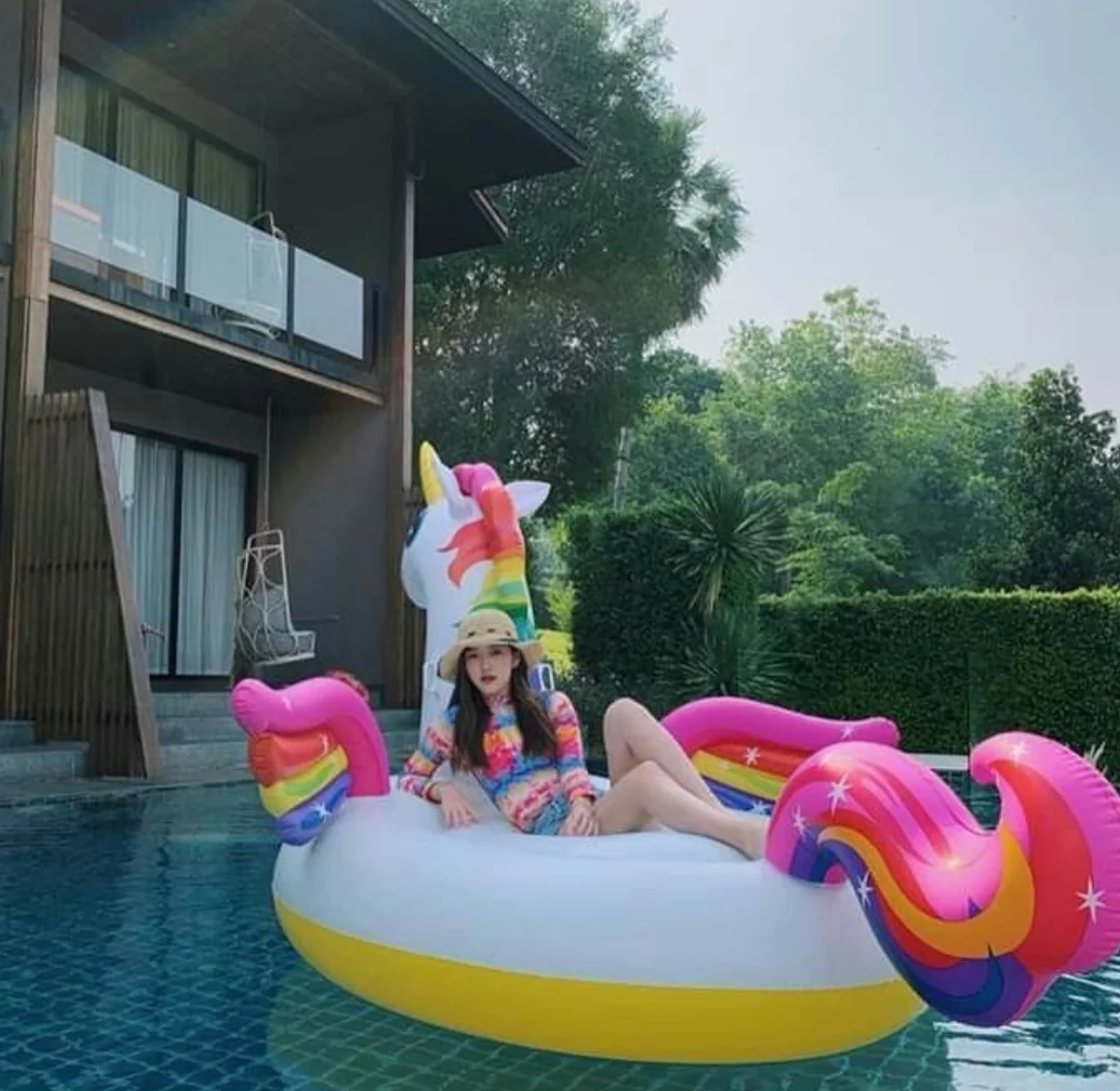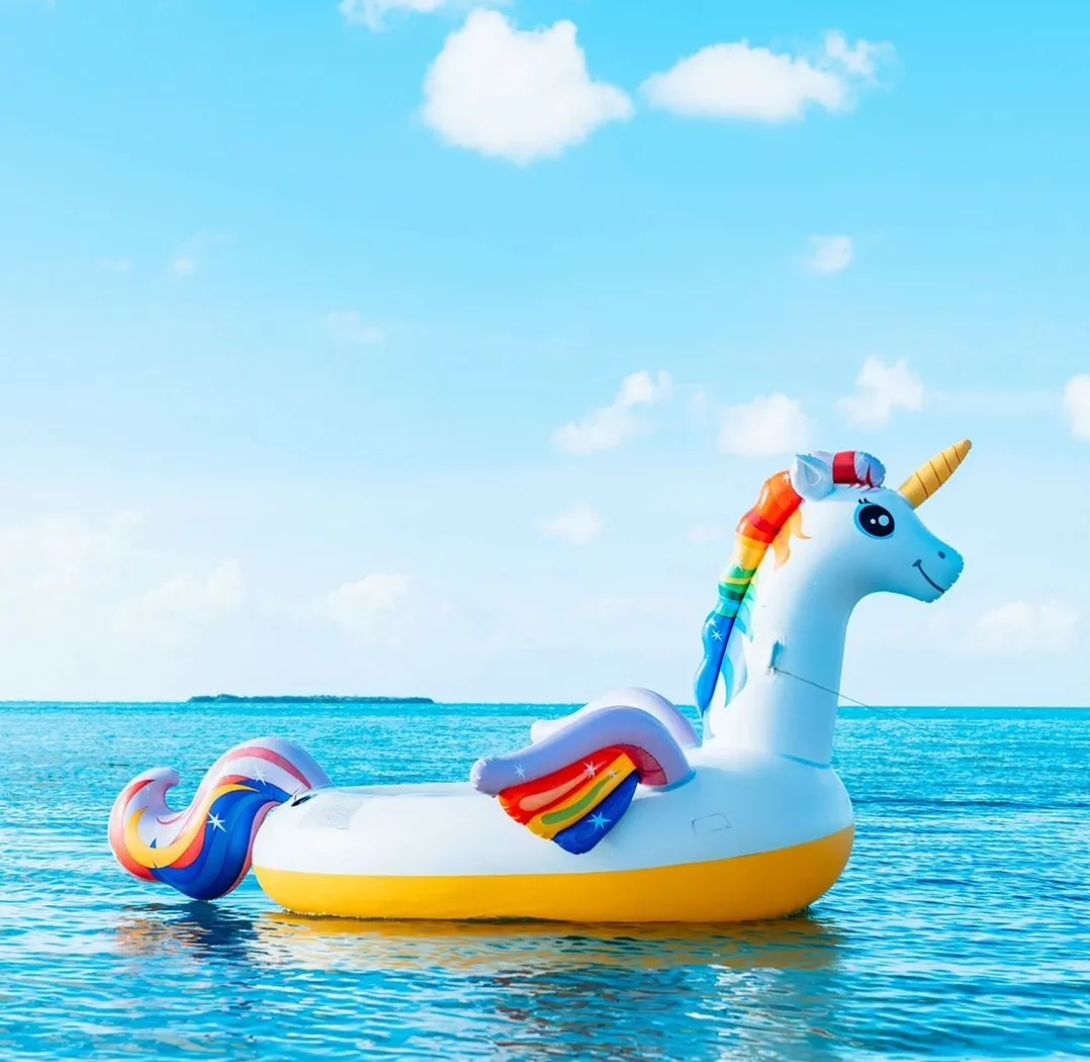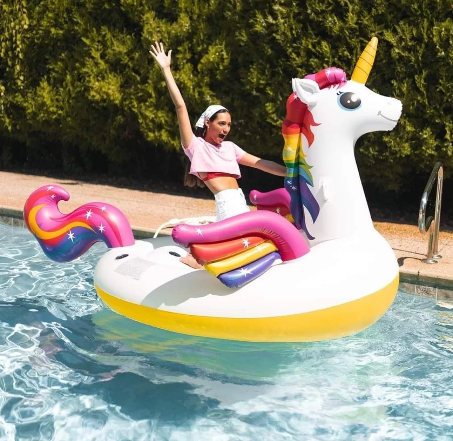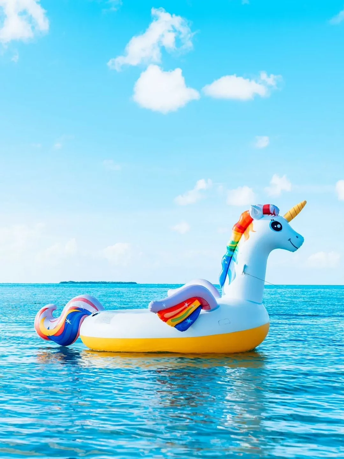 Transform your pool into a fairytale paradise with the Enchanted Giant Rainbow Unicorn Pool Float. This magnificent, extra-large inflatable is designed to capture imaginations with its bright white body, a golden horn, and a flowing mane and tail in all the colors of the rainbow. Measuring an impressive 225cm x 175cm, it offers ample space for comfortable lounging and relaxation for both adults and children. Constructed from durable, high-quality PVC, this unicorn float is built to withstand endless hours of fun while providing a stable platform on the water. For added safety and easy maneuvering, it features strategically placed handles that assist with balance and climbing aboard. It's the perfect accessory for lively pool parties, memorable vacations, or simply capturing stunning, whimsical photos, ensuring every swim day is filled with magic and joy.