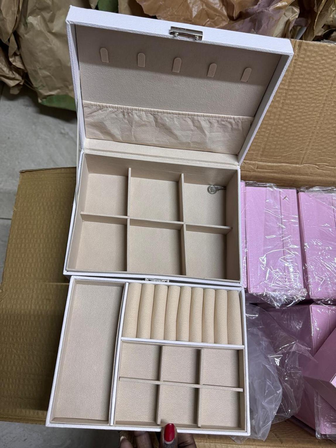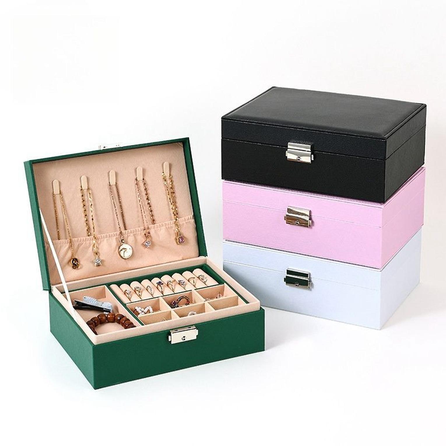 Organize your cherished accessories beautifully with this sophisticated, large-capacity storage solution designed for superior protection. The case is constructed using premium PU leather fabric, offering excellent resistance to wear, moisture, and dust, ensuring the longevity of both the box and its contents. Inside, the design is highly practical, featuring a plush velvet lining and removable dividers that allow for flexible storage of both small items like rings and earrings, and larger pieces such as watches or bangles. A reliable snap lock provides an added layer of security, keeping your valuable items protected from accidental spills or loss. Available in black, pink, and white, this organizer is a high-quality home item that combines a refined aesthetic with unmatched functionality for comprehensive jewelry storage.