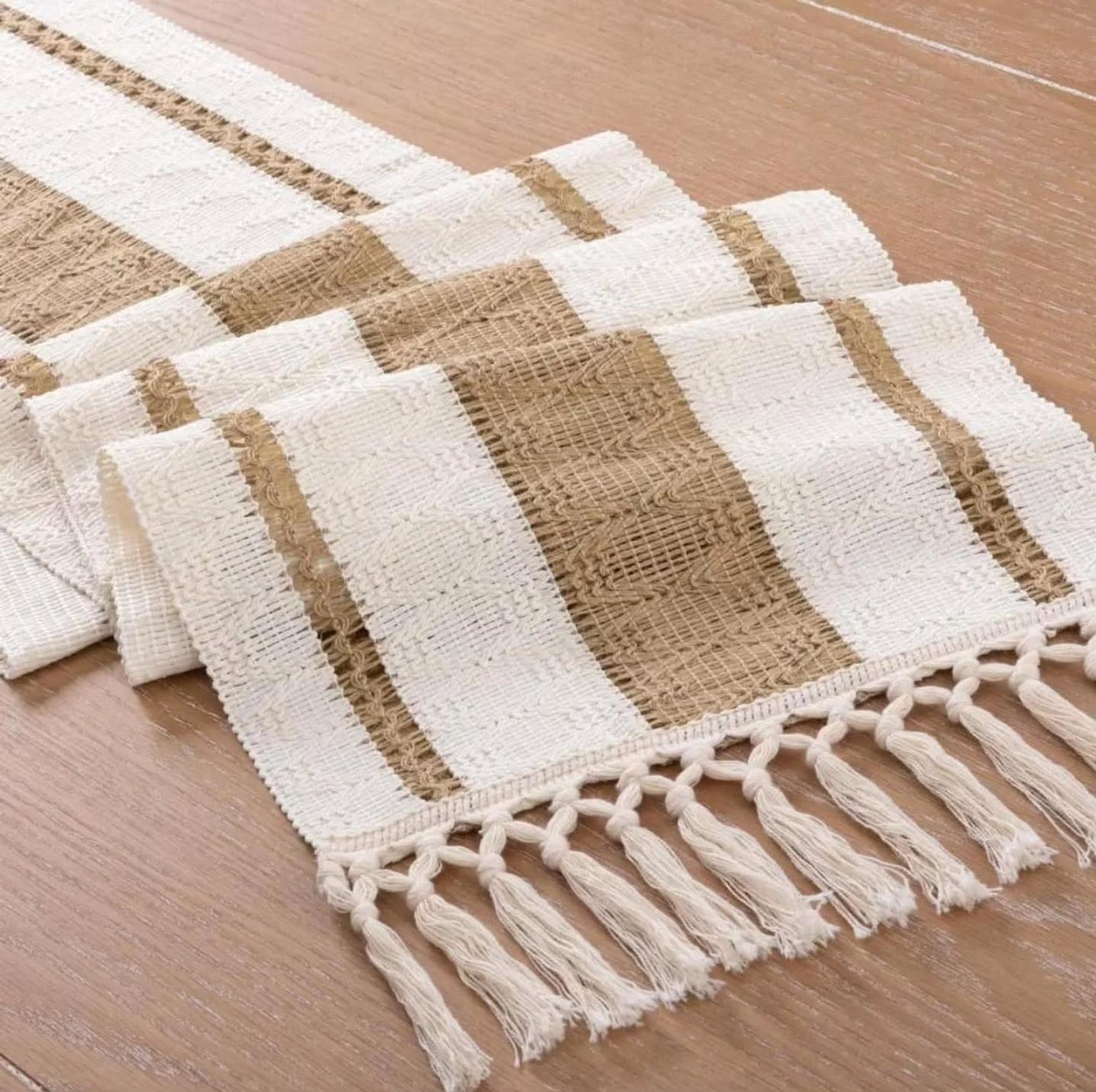 Maximize the visual impact of your dining or bedroom area with this generously sized, premium woven runner. This textile combines a natural texture with a stylish striped pattern, instantly providing a sophisticated and inviting focal point. Measuring an impressive 30 cm×275 cm, the extra-long dimension is specifically ideal for fully dressing 8-seater dining tables, offering substantial coverage and protection for your surfaces. It is equally suitable for use as a luxurious bed sash across the foot of any size bed, adding a touch of tailored elegance to your sleeping space. The high-quality weaving ensures durability and a superior drape, making this versatile runner a quintessential piece for adding a textural and elegant finish to your home décor.