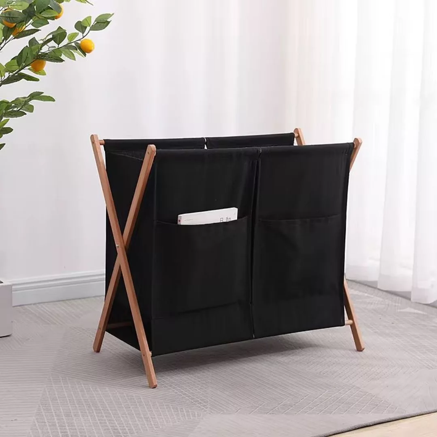 Streamline your laundry routine with this spacious and intelligently designed foldable partitioned laundry basket. The hamper features two separate interior compartments, making it simple to presort clothing into lights and darks, or colors and delicates, saving you time on laundry day. The basket section is supported by a stable and visually appealing wooden cross-frame that gives it a clean, modern aesthetic suitable for any bedroom, closet, or utility room. When not in use, the entire unit collapses flat for convenient storage, making it perfect for smaller living spaces. With generous dimensions of 62 cm×52 cm×30 cm, this organizer offers substantial capacity while maintaining a lightweight and easily portable structure.