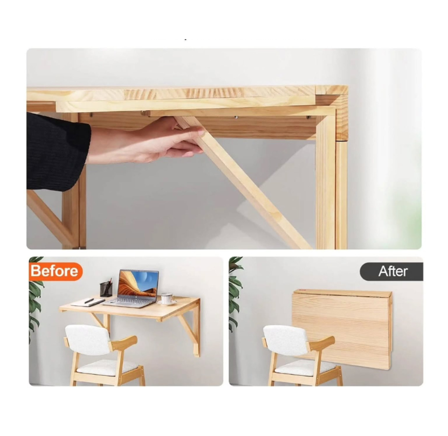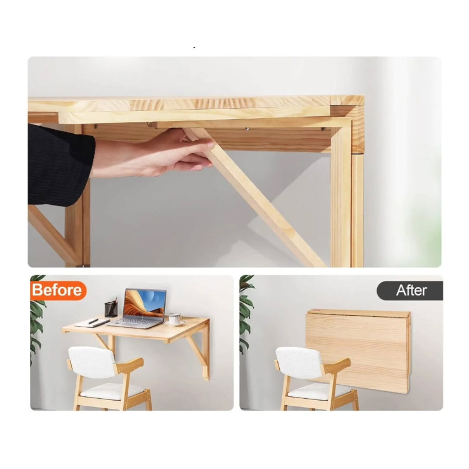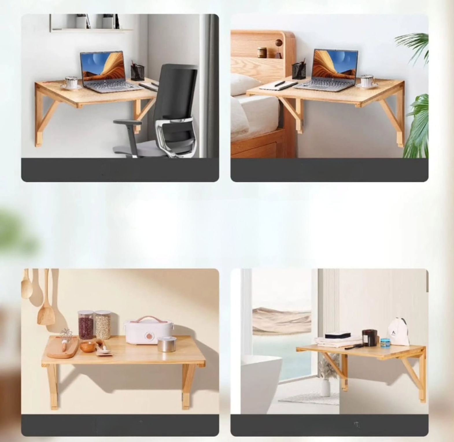 The Fold Smart Bamboo Wall-Mounted Table is the perfect blend of modern practicality and natural design, offering a compact yet sturdy solution for small spaces. Made from eco-friendly solid bamboo wood, this table features a 0.7-inch thick surface with smooth curved corners for added safety and comfort. Its reinforced carbon steel hinges provide reliable stability and allow for a quick fold-down mechanism, supporting up to 100 lbs with ease. The bamboo construction ensures heat resistance, high strength, and durability, making it ideal for use as a study desk, dining surface, or work area. Measuring 60x40cm, this minimalist foldable desk transforms any wall into a stylish, functional workspace and disappears just as easily when you need extra room.