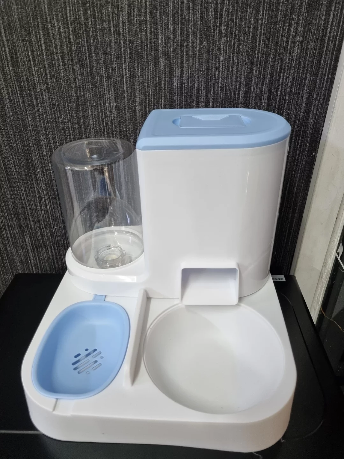 The ultimate solution for effortless pet nutrition and hydration. This self-dispensing station combines a food reservoir and a water bottle into one sleek, durable unit made from food-grade PP material. The large capacity design significantly reduces the frequency of refills, making it perfect for busy pet owners or multi-pet households. Utilizing a simple gravity principle, the dry food and water automatically replenish the attached bowls as your pet consumes them, maintaining a consistent supply throughout the day. The thoughtfully structured design is easy to disassemble and clean, promoting optimal hygiene for your furry companion's meals. Available in sophisticated color options like grey, green, and blue, this feeder integrates seamlessly into any home environment while providing reliable, around-the-clock nourishment for your cat or dog.