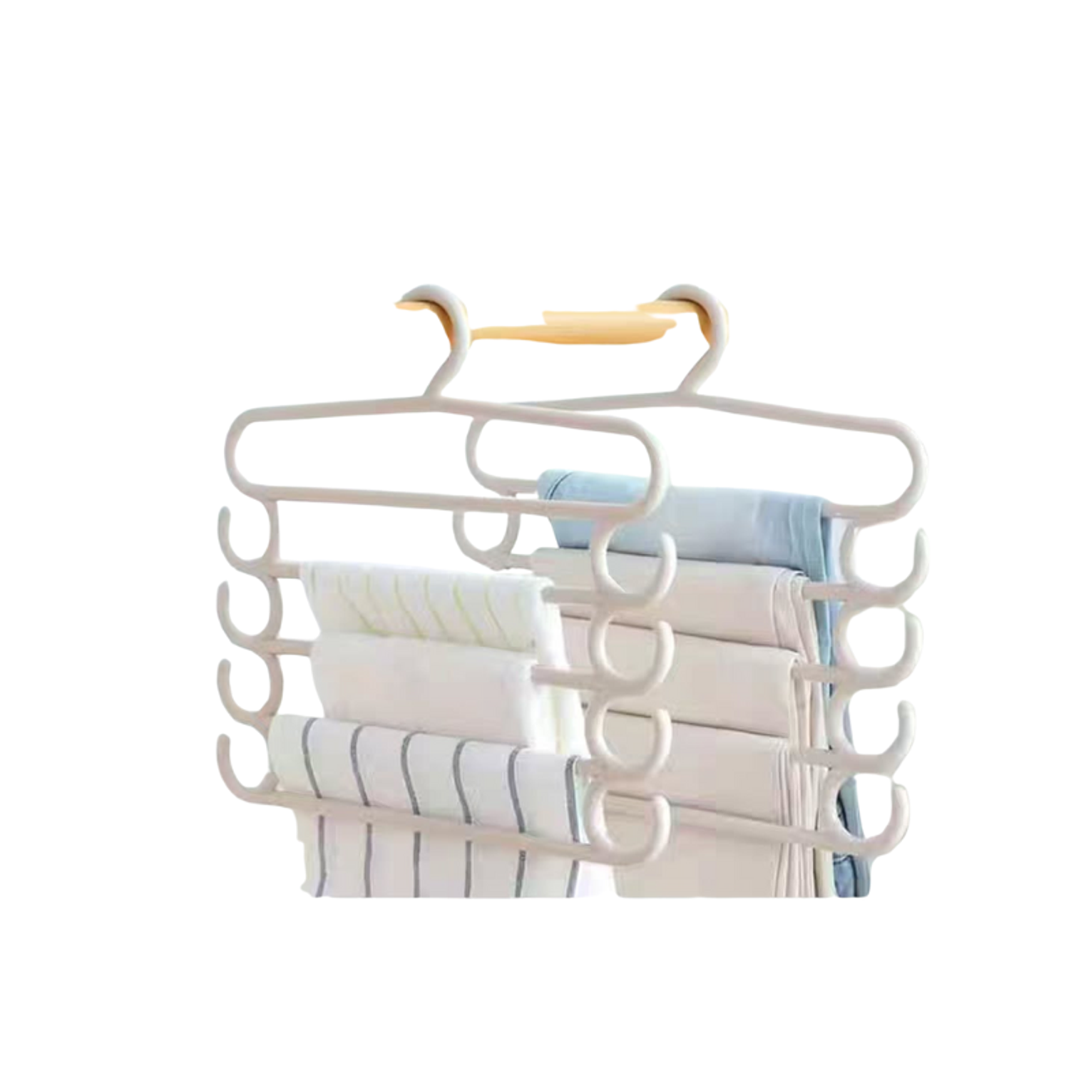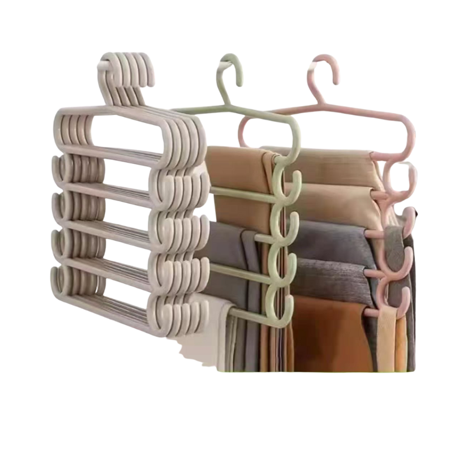 Maximize closet space with this heavy-duty, multi-layer hanger, designed to hold multiple pairs of trousers, jeans, or scarves vertically. Its robust construction keeps garments neat and wrinkle-free. Available in Blue, Green, and Pink.