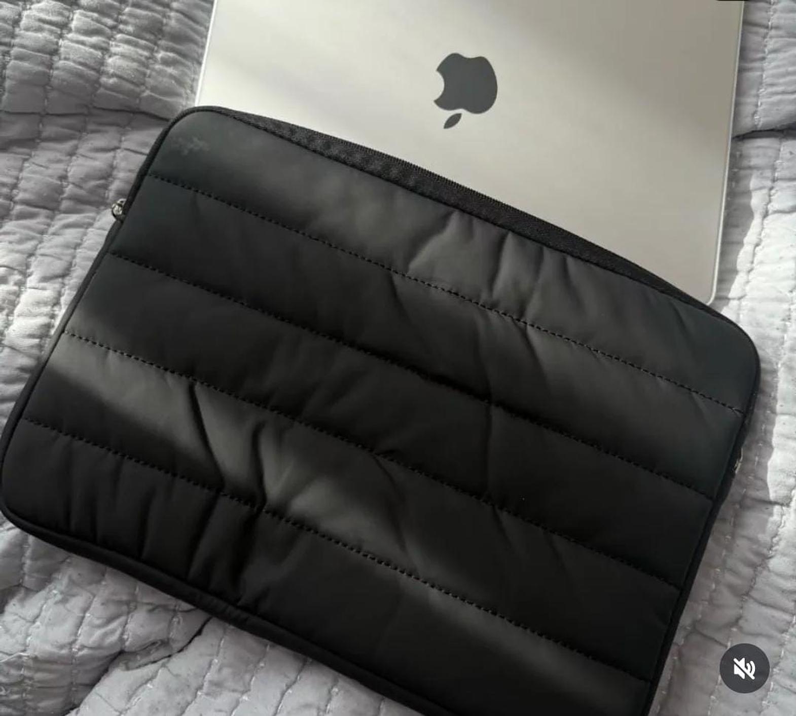 A high-quality puffy laptop sleeve offering plush protection and modern style for your device.