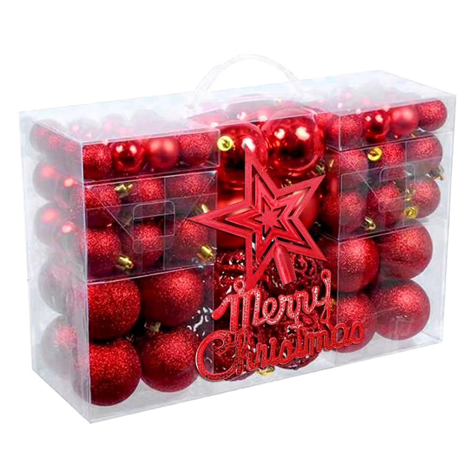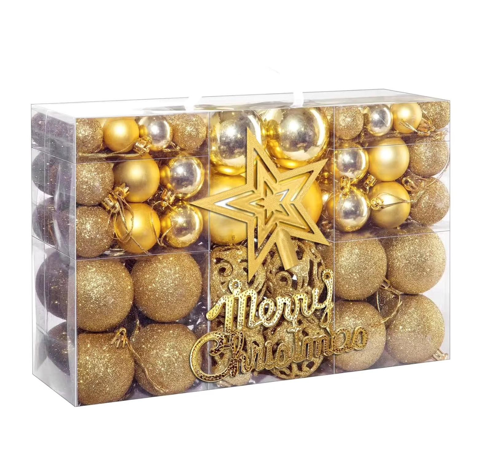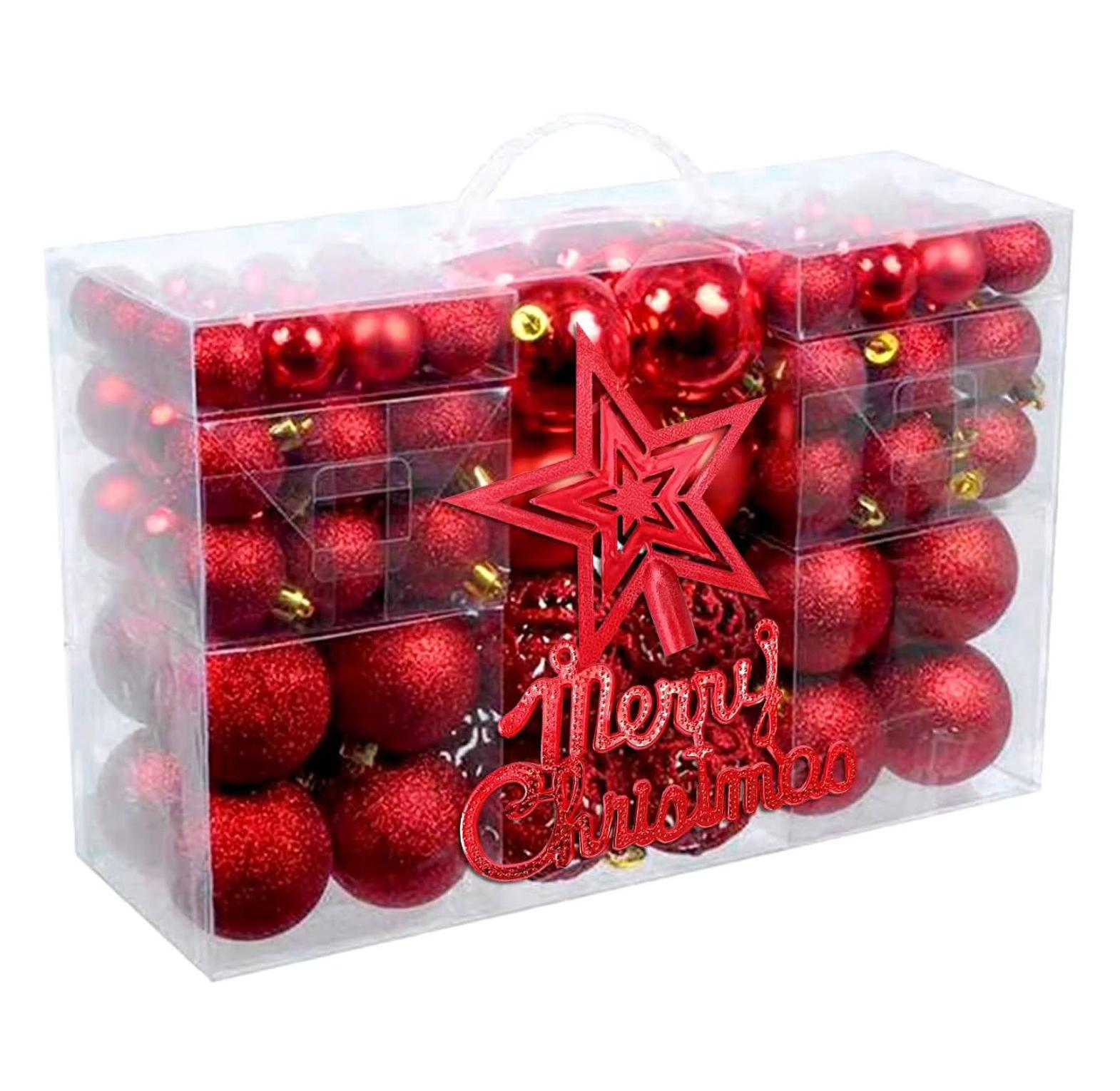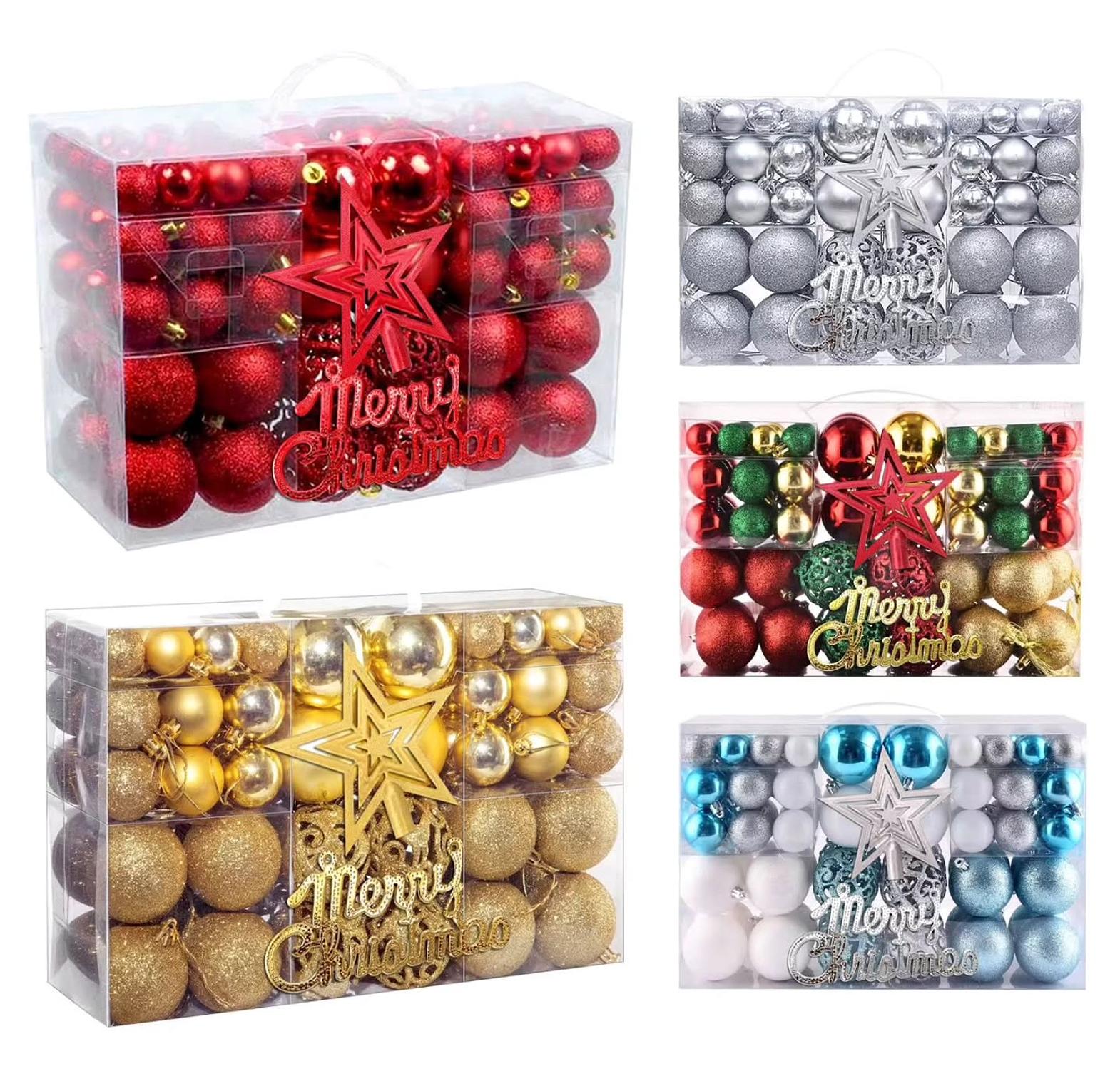 The HolidaySpark 102-Piece Christmas Ball Ornament Set is the ultimate collection for creating a dazzling Christmas tree centerpiece. With a variety of colors including gold, red, silver, multicolor, white, and blue, this set allows you to design a festive, eye-catching display that suits any holiday theme. Each ornament is lightweight yet durable, making them easy to hang and reposition, while maintaining a polished, shimmering look throughout the season. Perfect for trees, wreaths, garlands, or holiday décor arrangements, this set brings festive charm and joyful spirit to your home year after year.