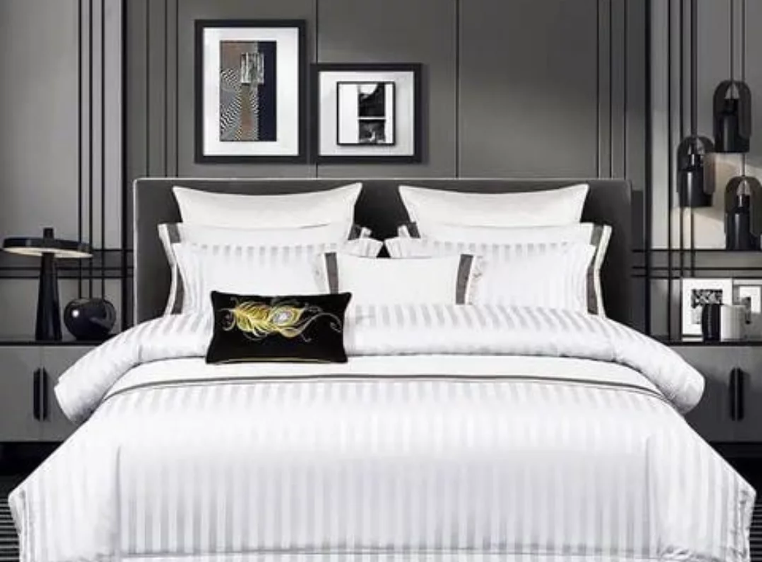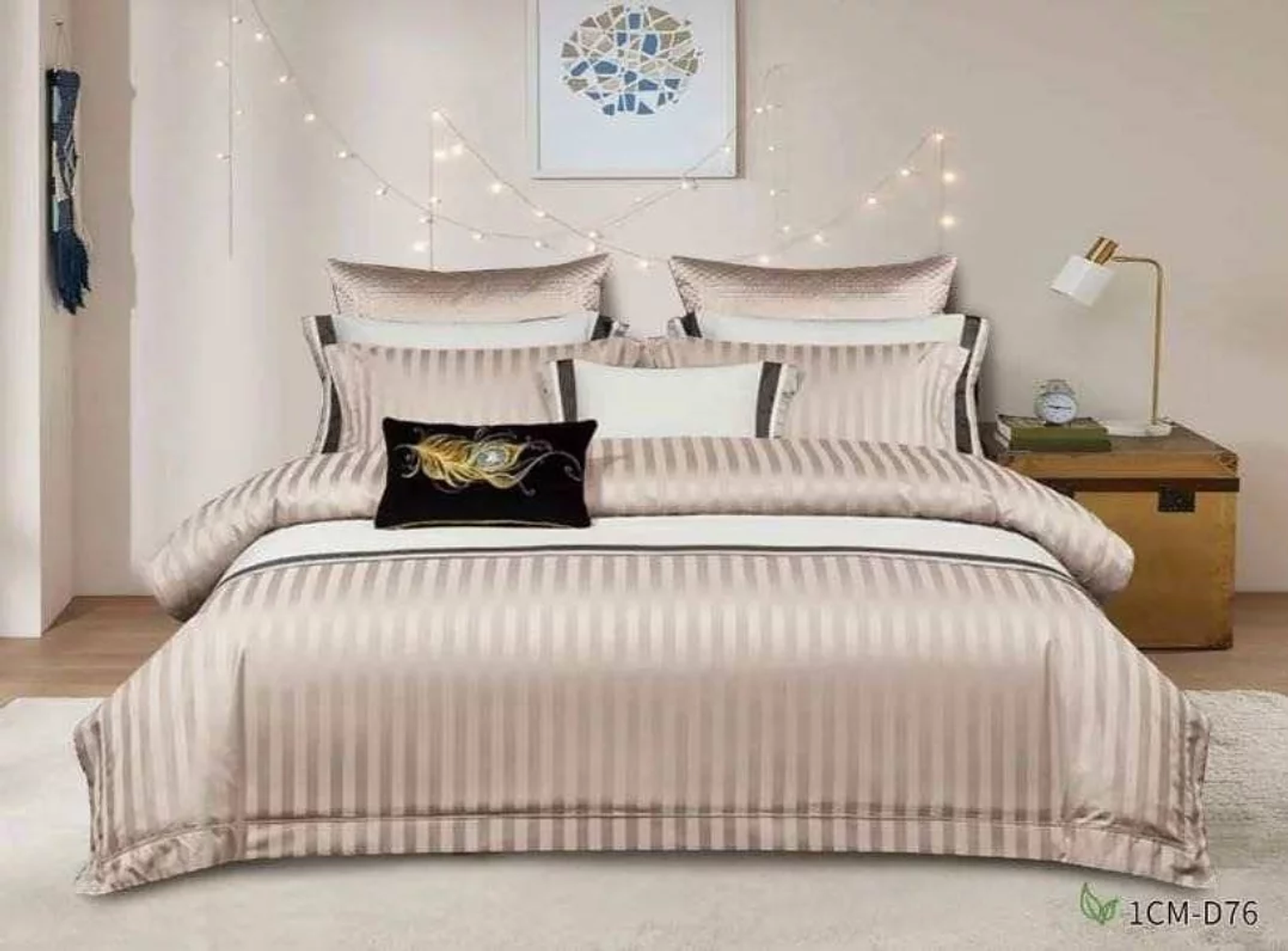 Elevate your sleeping environment with this exquisite bedding set, designed for those who appreciate refined comfort and style. Crafted from soft, breathable cotton satin, the fabric offers a luxurious, silky-smooth feel that is cool against the skin and adds a gorgeous, subtle sheen to your room. The classic striped pattern provides a clean, sophisticated aesthetic that integrates seamlessly with both modern and traditional bedroom décor.