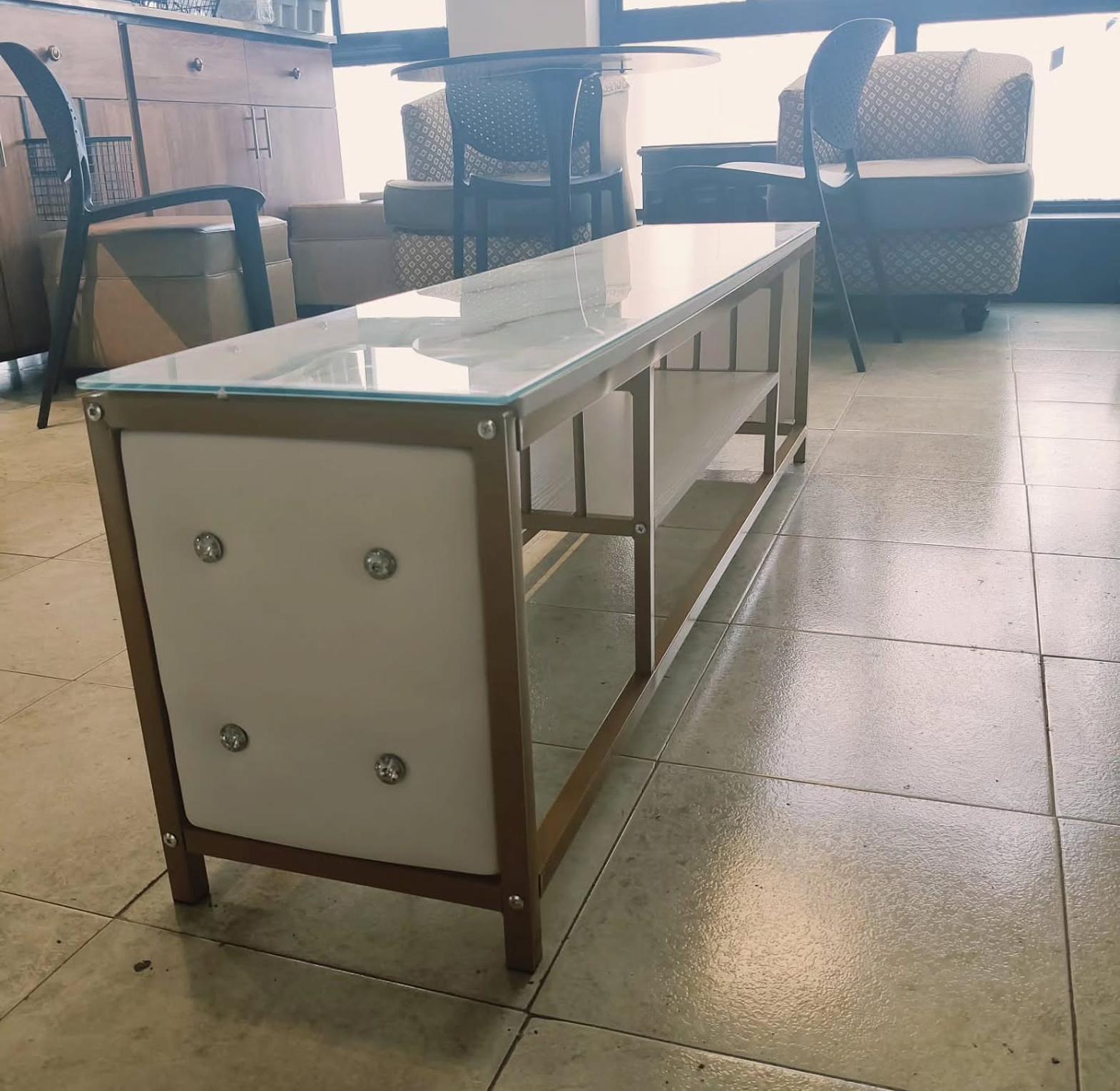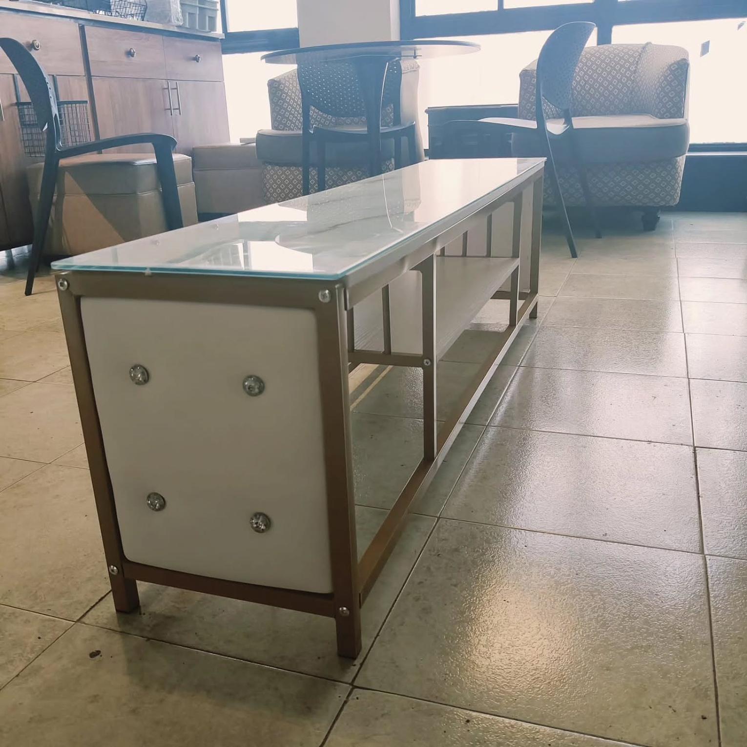 Combine contemporary luxury with practical functionality using this stunning TV stand. Its streamlined, low-profile design provides a sophisticated and airy anchor for your entertainment area, easily supporting your television and showcasing your media components.