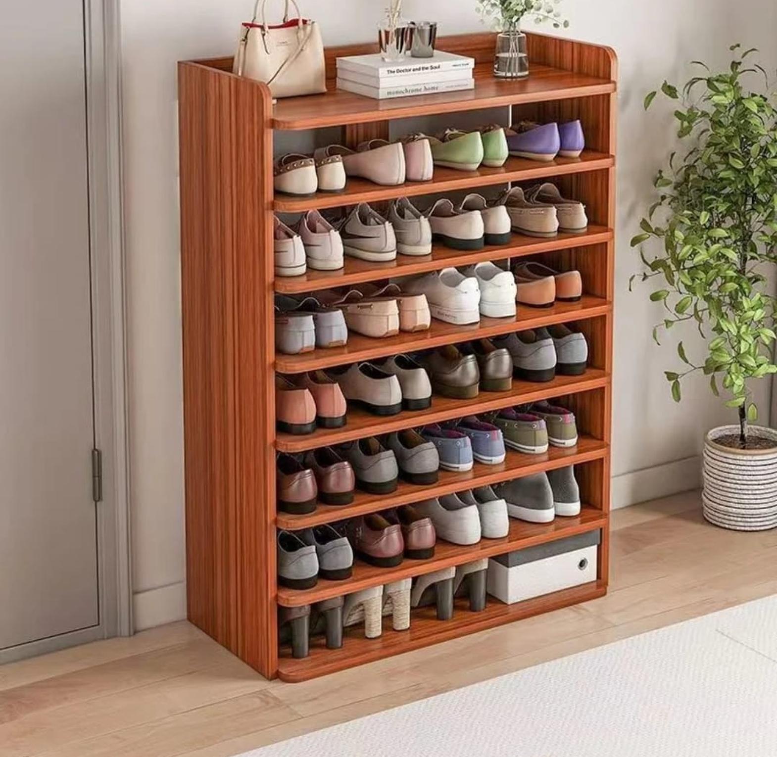 Streamline your home and conquer clutter with this contemporary, high-capacity shoe organizer designed for daily use. Measuring 102 x 26 x 120 cm, this robust unit features multiple deep tiers, providing generous space to neatly store and display everything from large boots and athletic sneakers to elegant heels and sandals. Crafted from quality wooden materials, this rack is built to last and maintains a sleek, refined appearance. The surface is exceptionally easy to wipe clean, ensuring the unit remains a fresh and functional addition to your space. Available in classic Brown and crisp White finishes, this storage solution is the ideal blend of practical utility and modern furniture design for efficient organization.