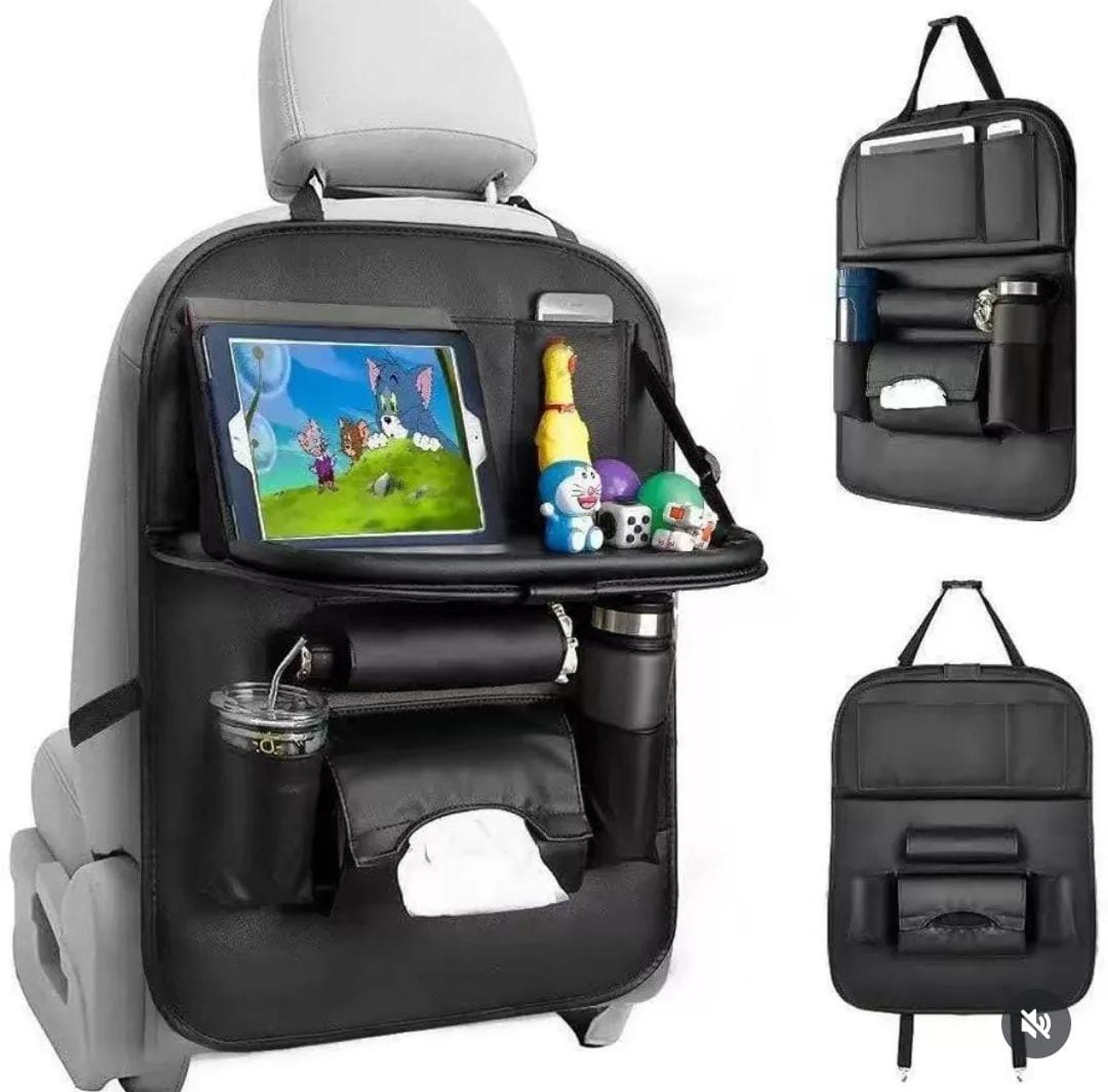 Transform your car’s back seat into a neat and functional space with this multifunctional storage bag, complete with a convenient foldable dining tray. Perfect for long trips or daily commutes, it offers multiple compartments to hold drinks, snacks, gadgets, tissues, and travel essentials, keeping everything within easy reach. The sturdy dining tray folds down to provide a stable surface for meals, work, or entertainment on the go. Crafted from durable, easy-to-clean materials, it’s designed to withstand everyday use while maintaining a sleek look. Ideal for families, rideshare drivers, or anyone who wants a clutter-free and comfortable ride.