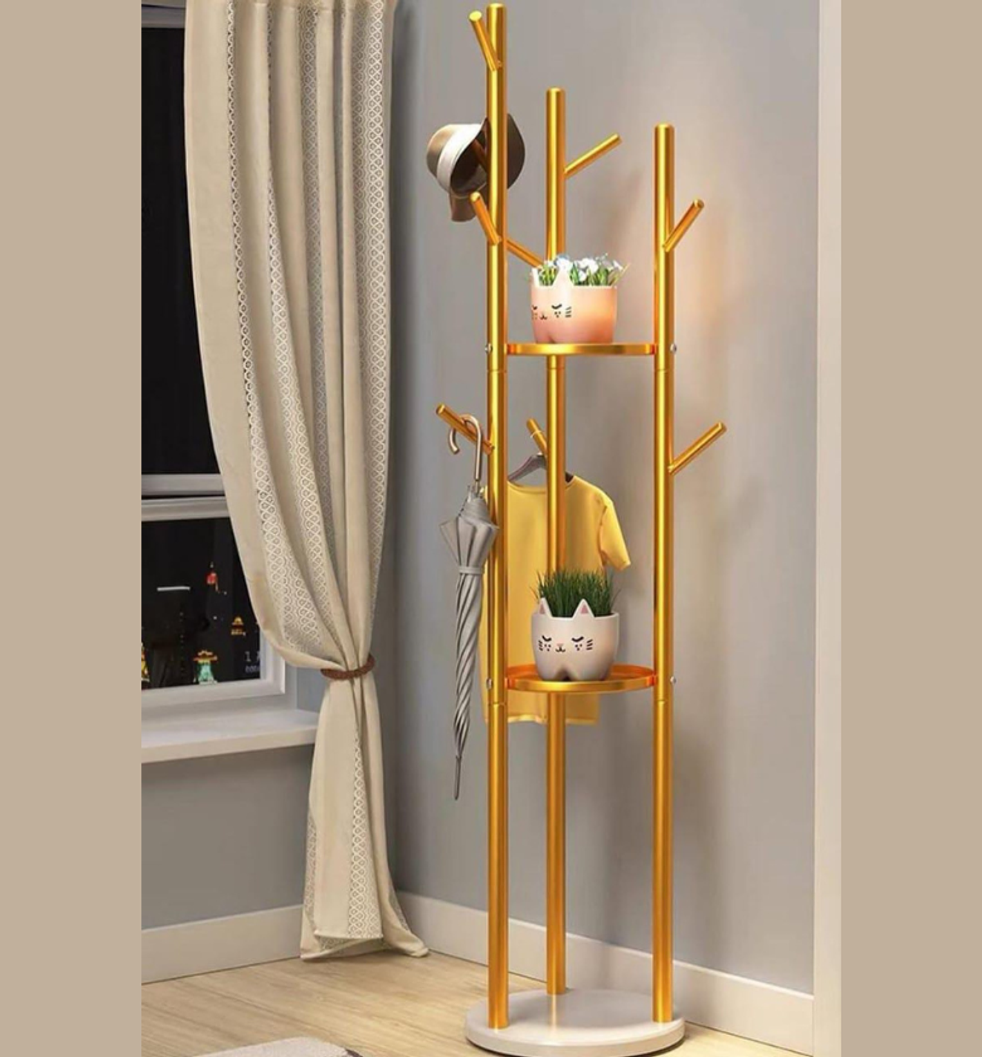 Combine practical storage with a touch of elegance using this versatile, gold-toned coat stand. Designed to handle all your daily essentials right by the front door, this piece is made from sturdy metal for reliable durability and features a beautiful, non-fading golden finish.