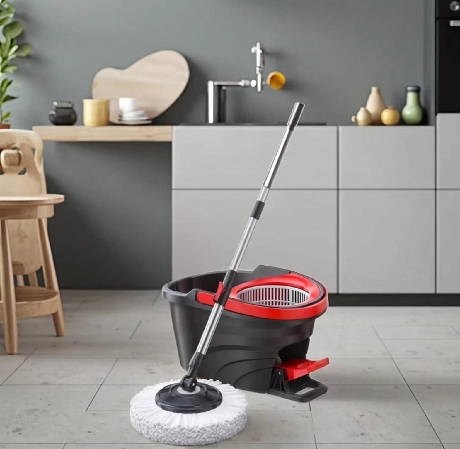 The Pedal Spin Mop & Bucket Set is an innovative cleaning solution designed to make floor care faster, easier, and more hygienic. Featuring a foot pedal wringer, it allows hands-free dehydration of the mop, keeping your hands dry and your cleaning routine effortless. The 360° rotating microfiber mop head effortlessly reaches corners, edges, and under furniture for a streak-free finish on any surface. Its highly absorbent microfiber technology traps dust, dirt, and spills with ease, while the sturdy yet lightweight bucket comes with a built-in splash guard to minimize mess. Perfect for all floor types including tile, wood, marble, laminate, and vinyl, this spin mop set ensures sparkling clean results every time.