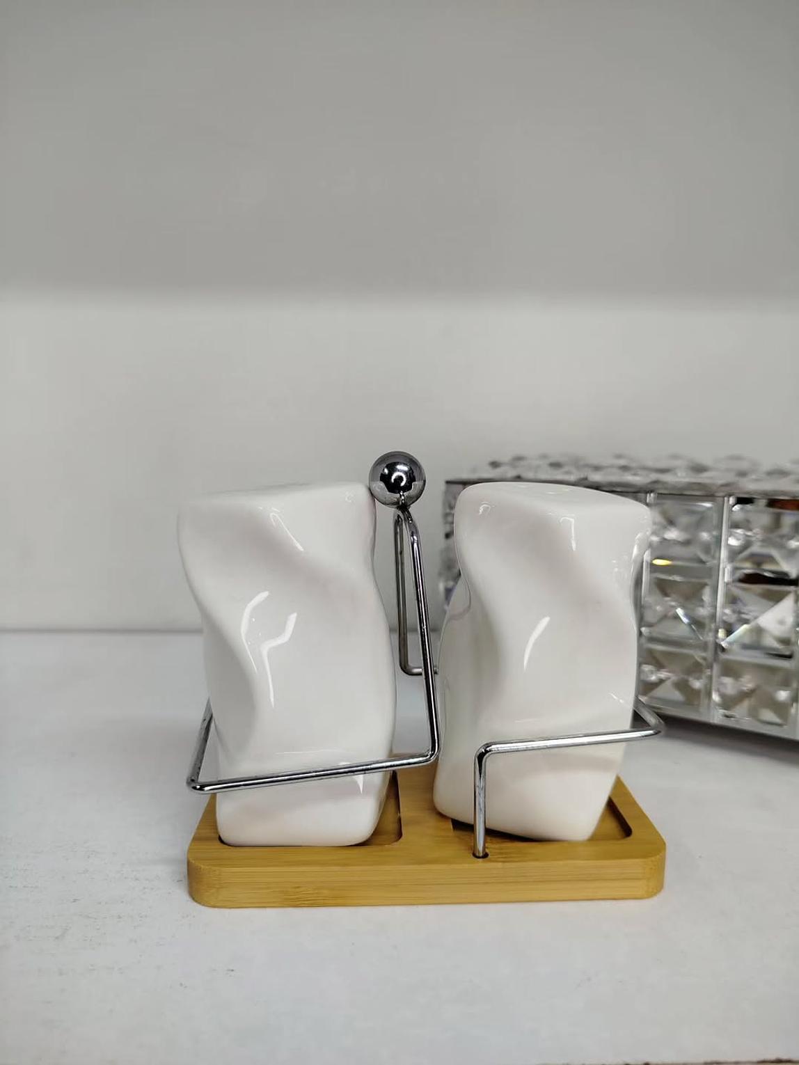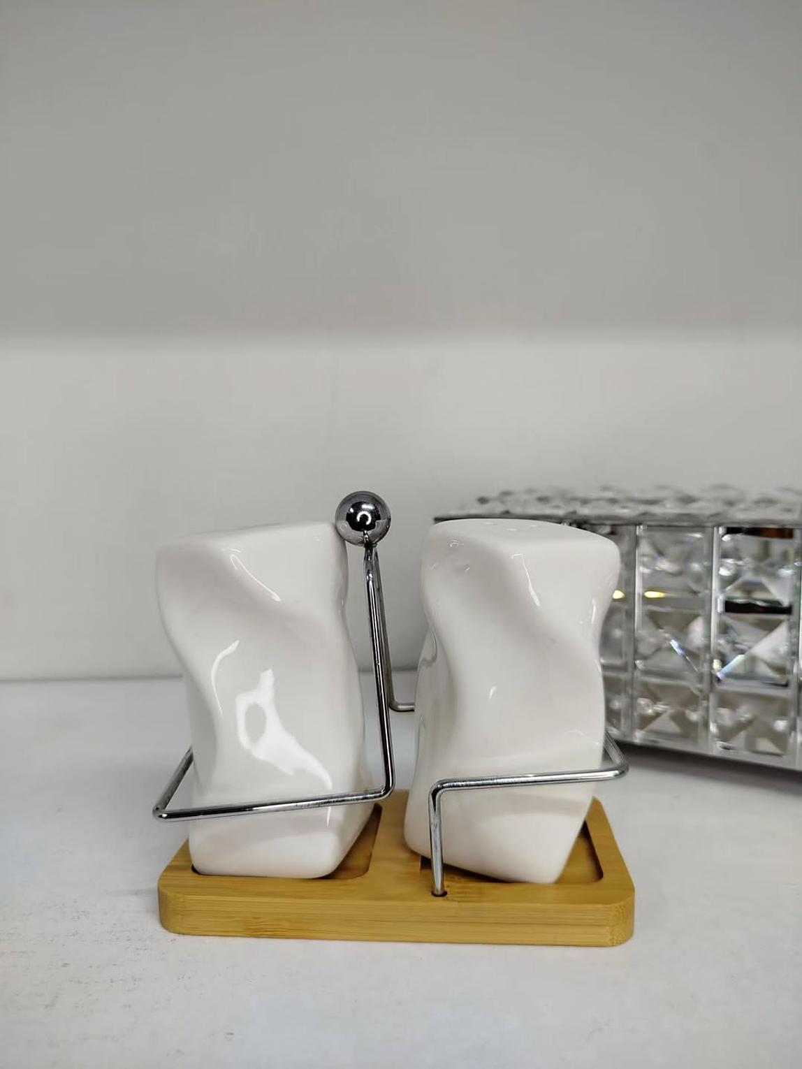 Elevate your dining experience with this premium double salt shaker set, designed for both style and convenience. The set includes 2 sleek shakers and a durable bamboo stand, making it a practical yet elegant addition to your kitchen or dining table. Crafted for everyday use, the shakers are easy to refill, while the bamboo base ensures neat organization and a touch of natural charm. Perfect for serving salt, pepper, or spices, this 3-piece set combines functionality with modern design, making it suitable for both home and restaurant settings.