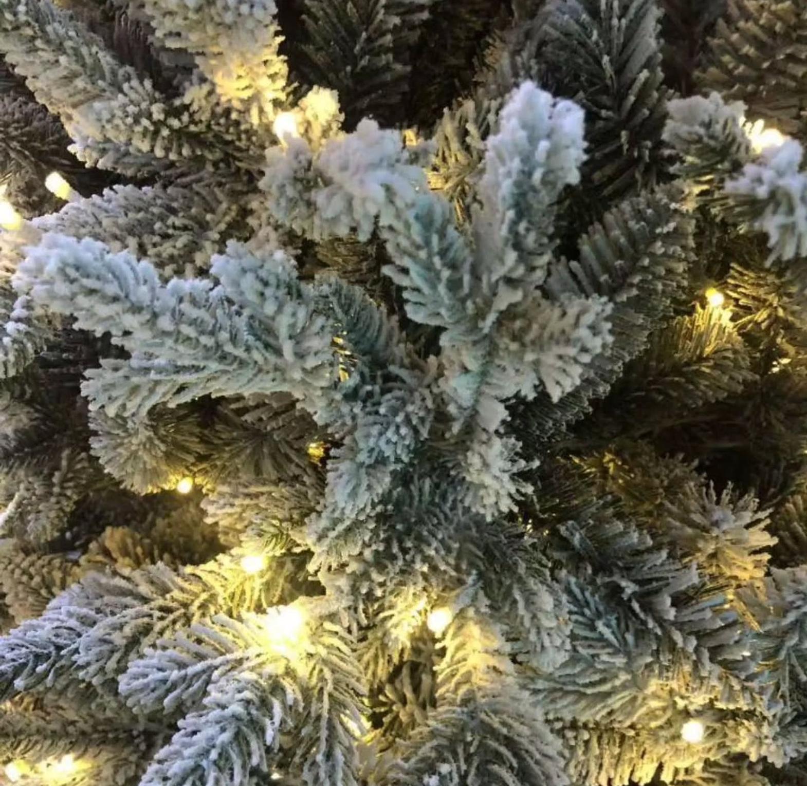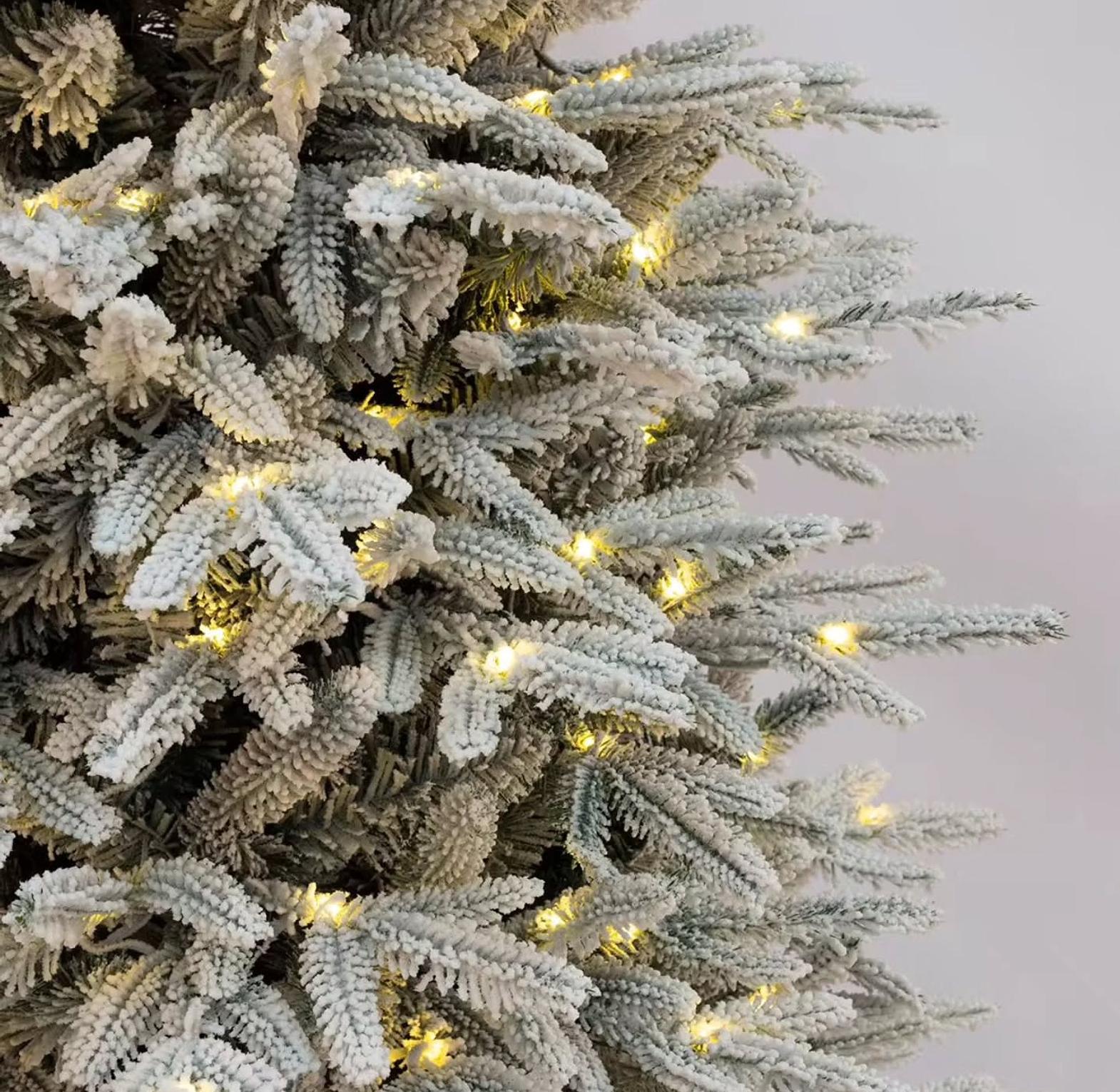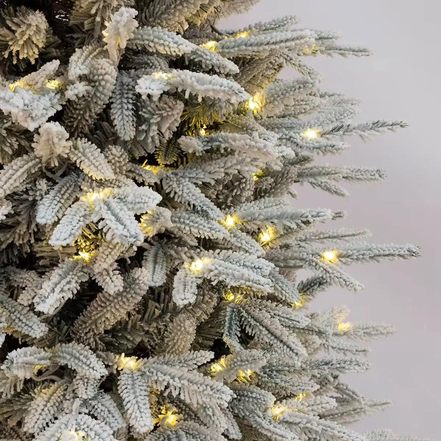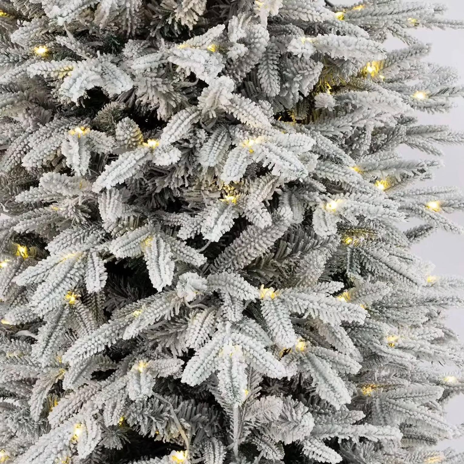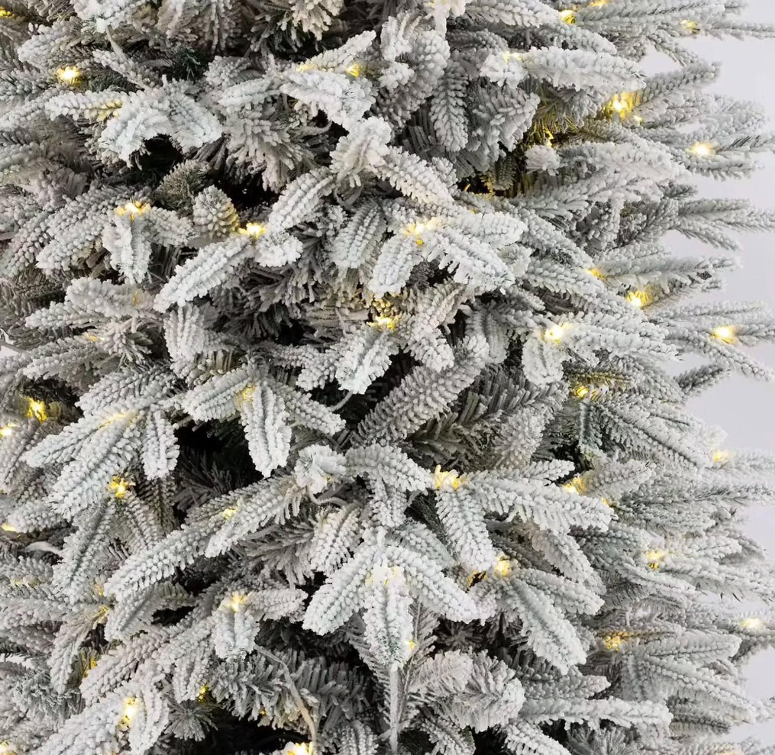 Achieve a show-stopping holiday display without the effort of stringing lights or the mess of a real tree. This premium-quality PVC Christmas tree is meticulously crafted to mimic the full, lush appearance of a mature spruce, enhanced by a beautiful snow-flocked finish that gives the branches a realistic, frosty look.