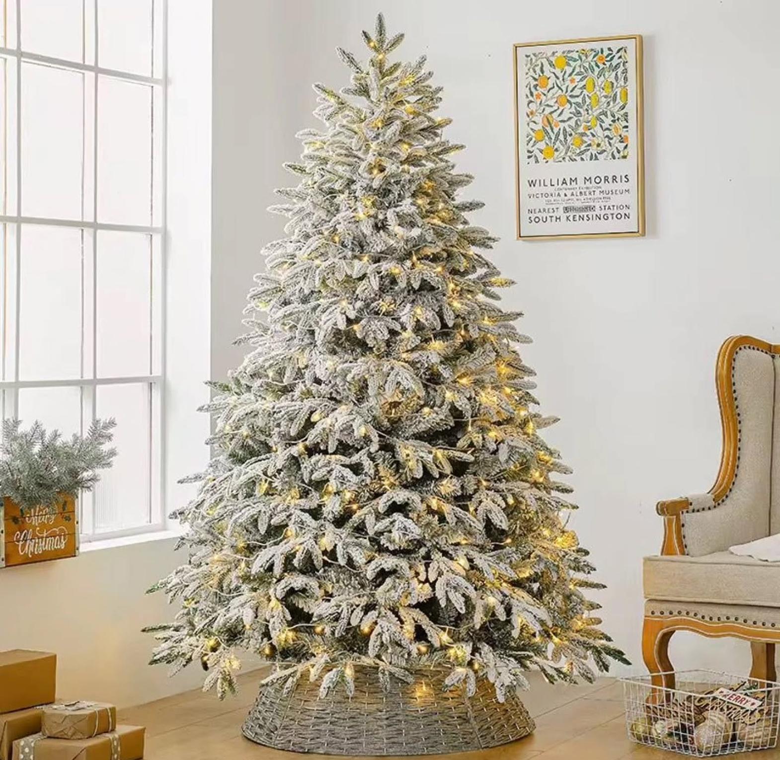 High-Quality Construction: Made from durable PVC material, this tree is designed to last for many seasons, maintaining its shape and beautiful flocking year after year.